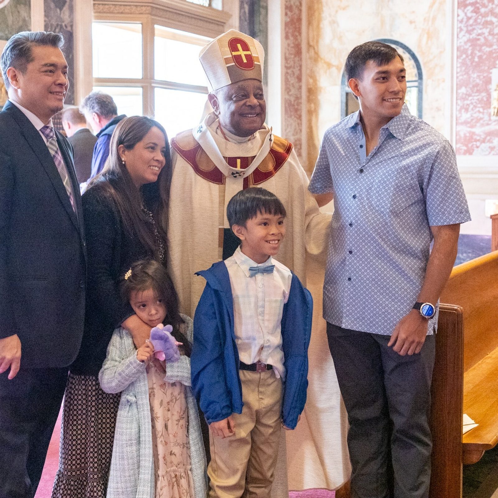 The evening before in a joyous Easter Vigil at St. Matthew’s Cathedral, Cardinal Gregory baptized 14 men, women and children, who joined nine other people in receiving the sacraments of Confirmation and Eucharist. They were among an estimated 1,350 people in parishes across The Roman Catholic Archdiocese of Washington who came into full communion in the Catholic Church during the Easter Vigil.