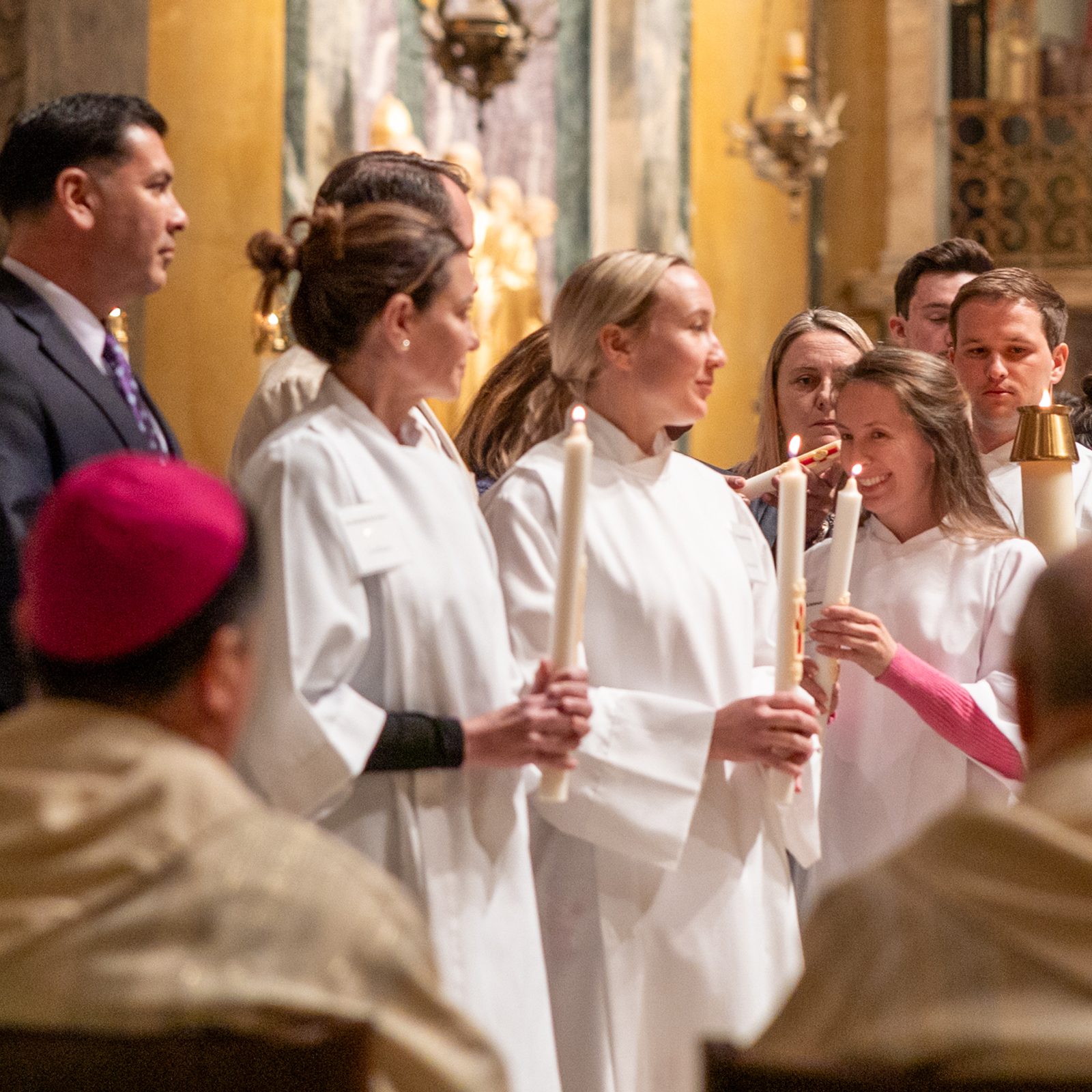 In an interview before the Easter Vigil, L.J. Milone, the director of faith formation at the cathedral, said, “I hope these people becoming Catholic inspire other Catholics to deepen their own relationship with God in Jesus through the Spirit.”
