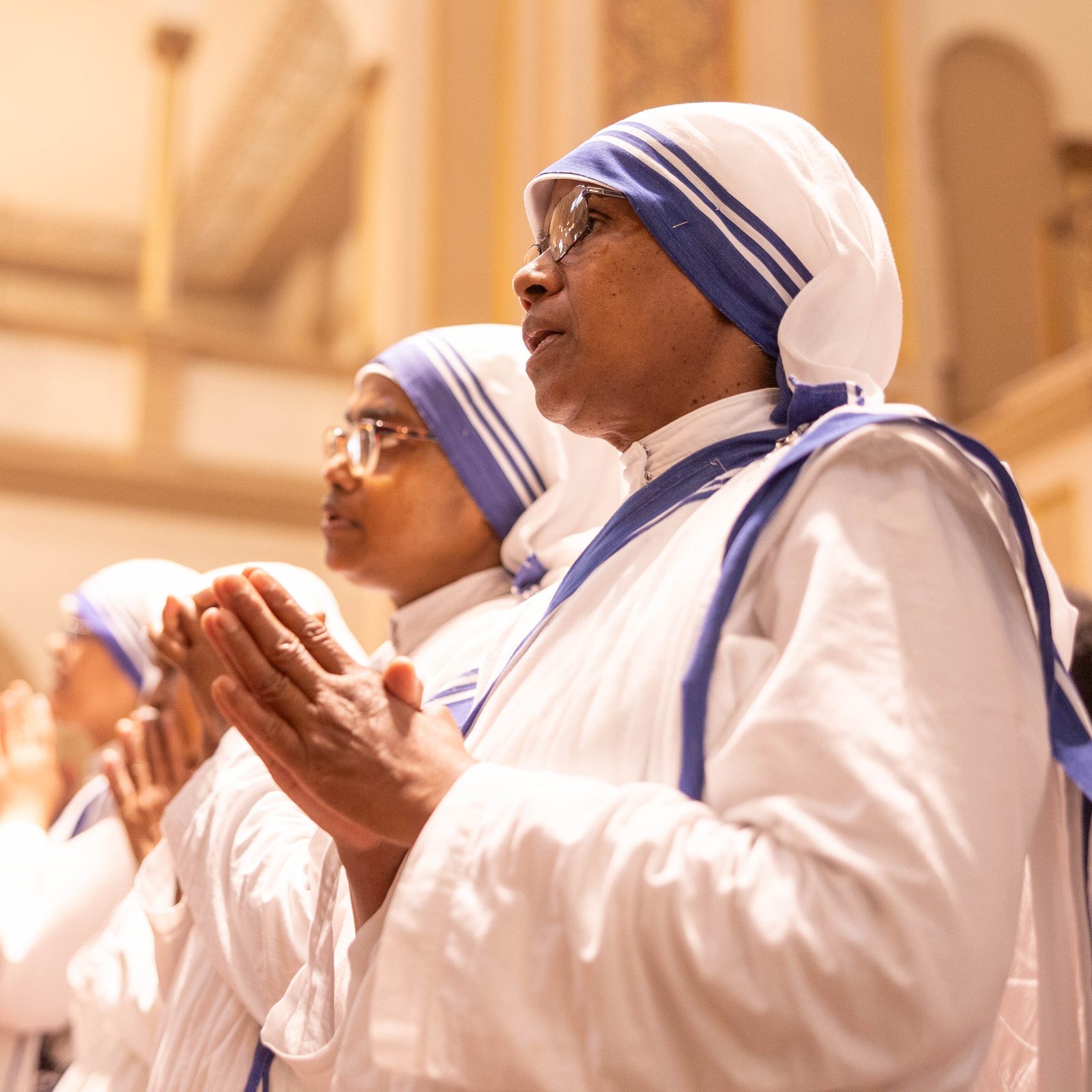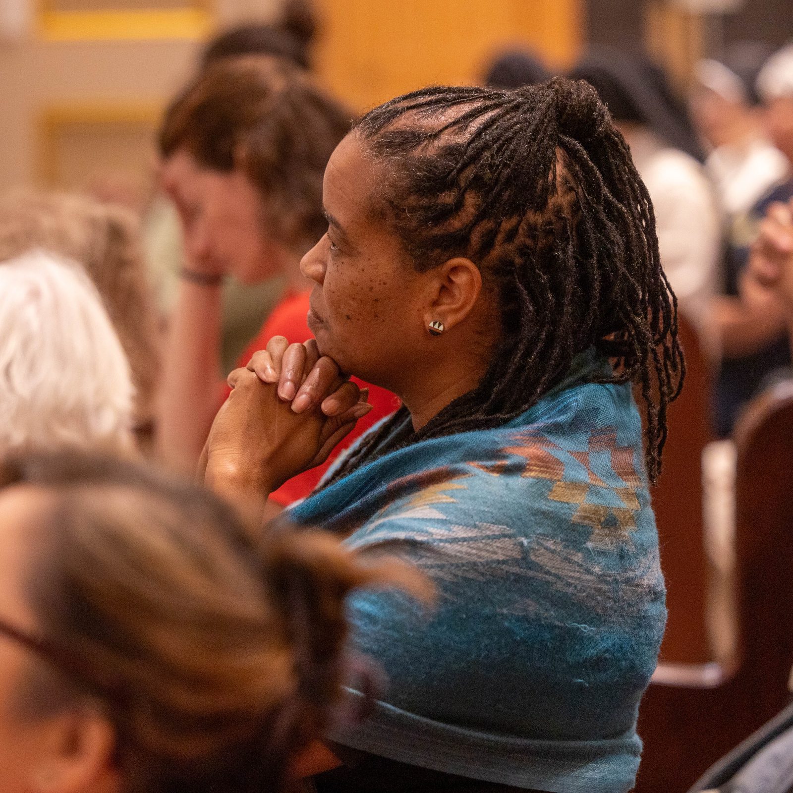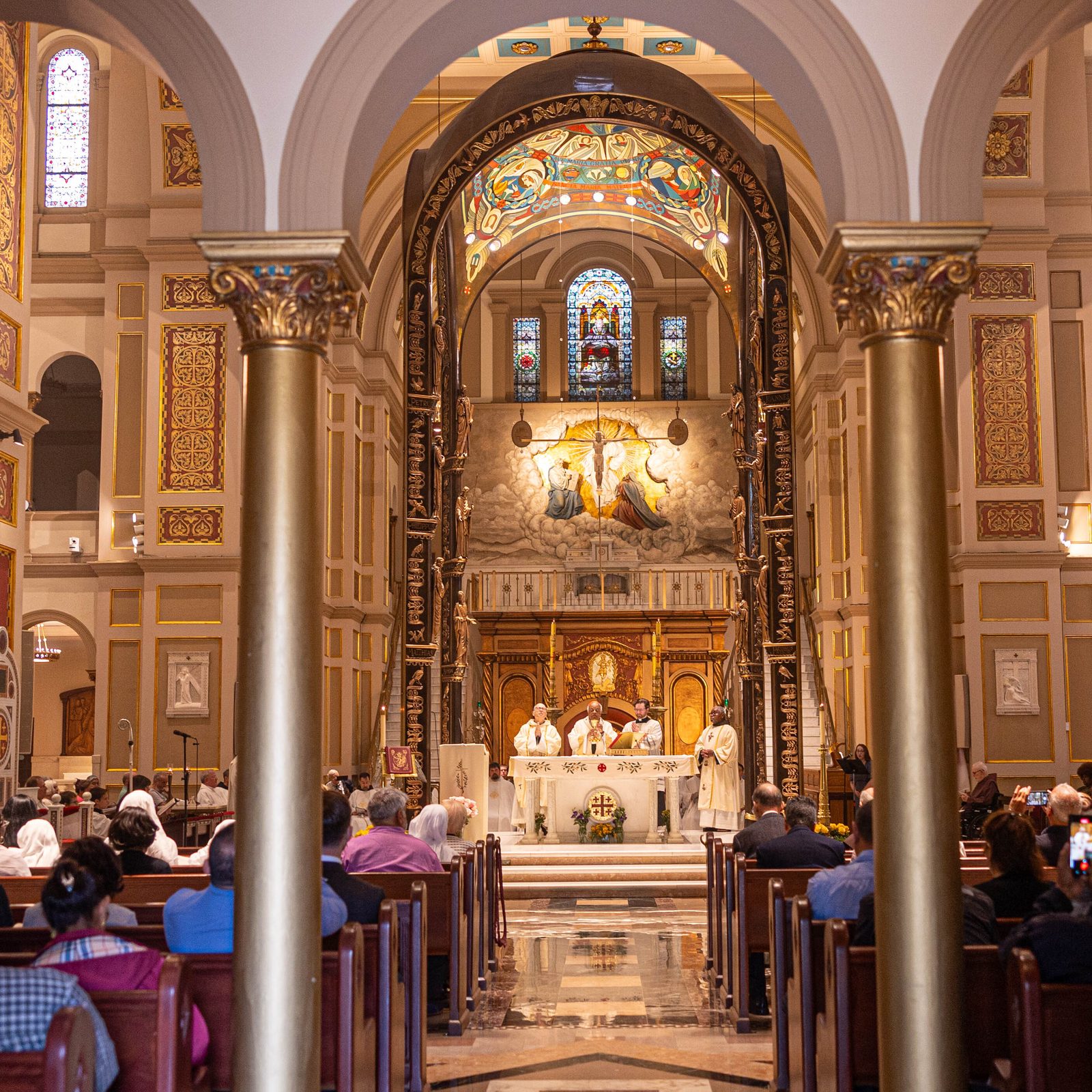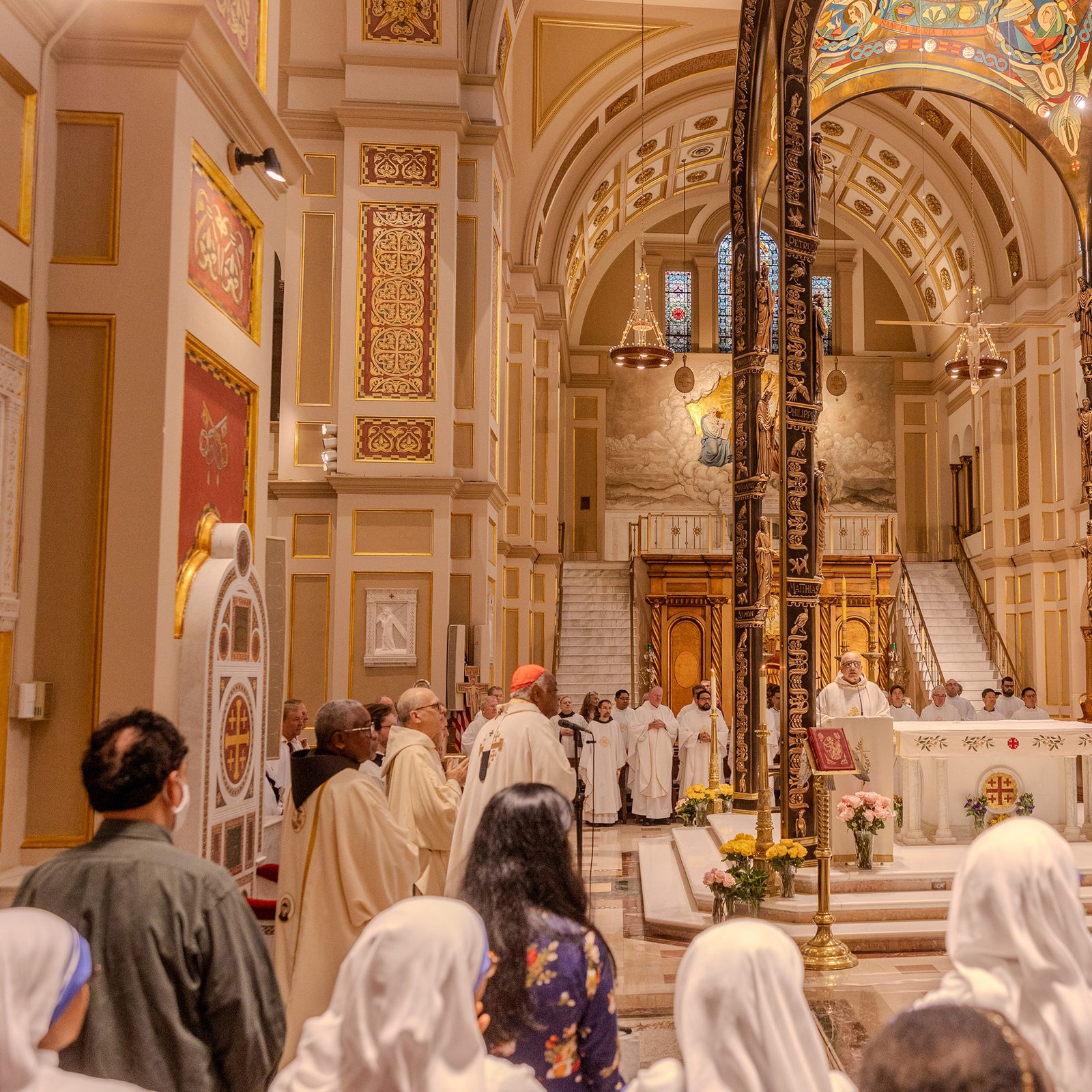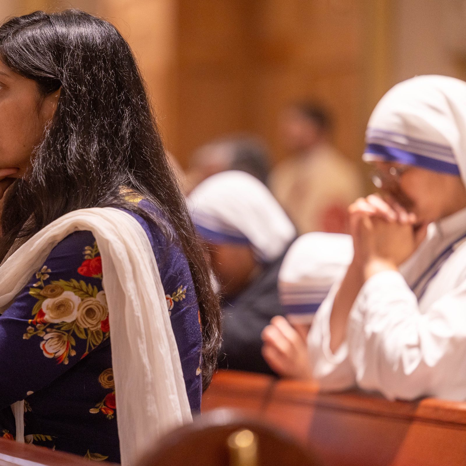 The faithful pray during the anniversary Mass at the Franciscan Monastery. (Catholic Standard photos by Mihoko Owada)