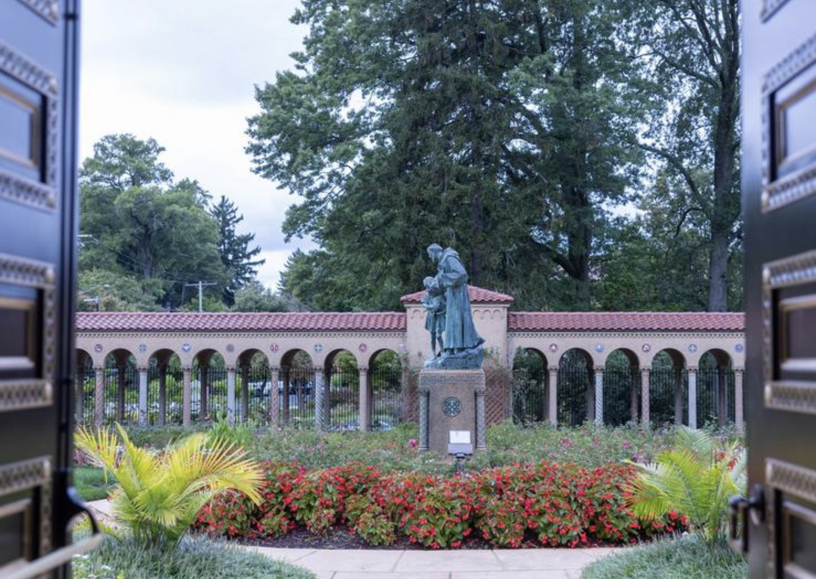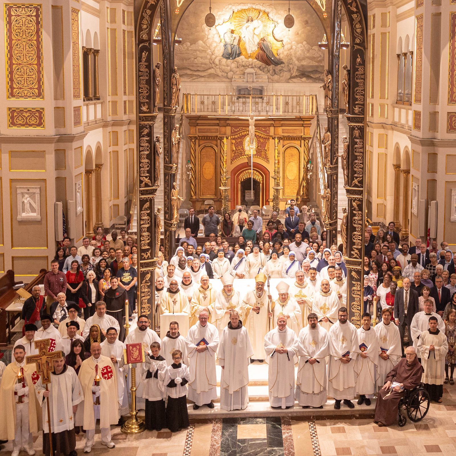 After the Sept. 22 Mass celebrating the 125th anniversary of the Franciscan Monastery of the Holy Land in Washington, D.C., all those who gathered for the Mass posed for a group photo. It was a recreation of the same photo that was taken at the monastery dedication Mass on Sept. 17, 1899. (Catholic Standard photo by Mihoko Owada)