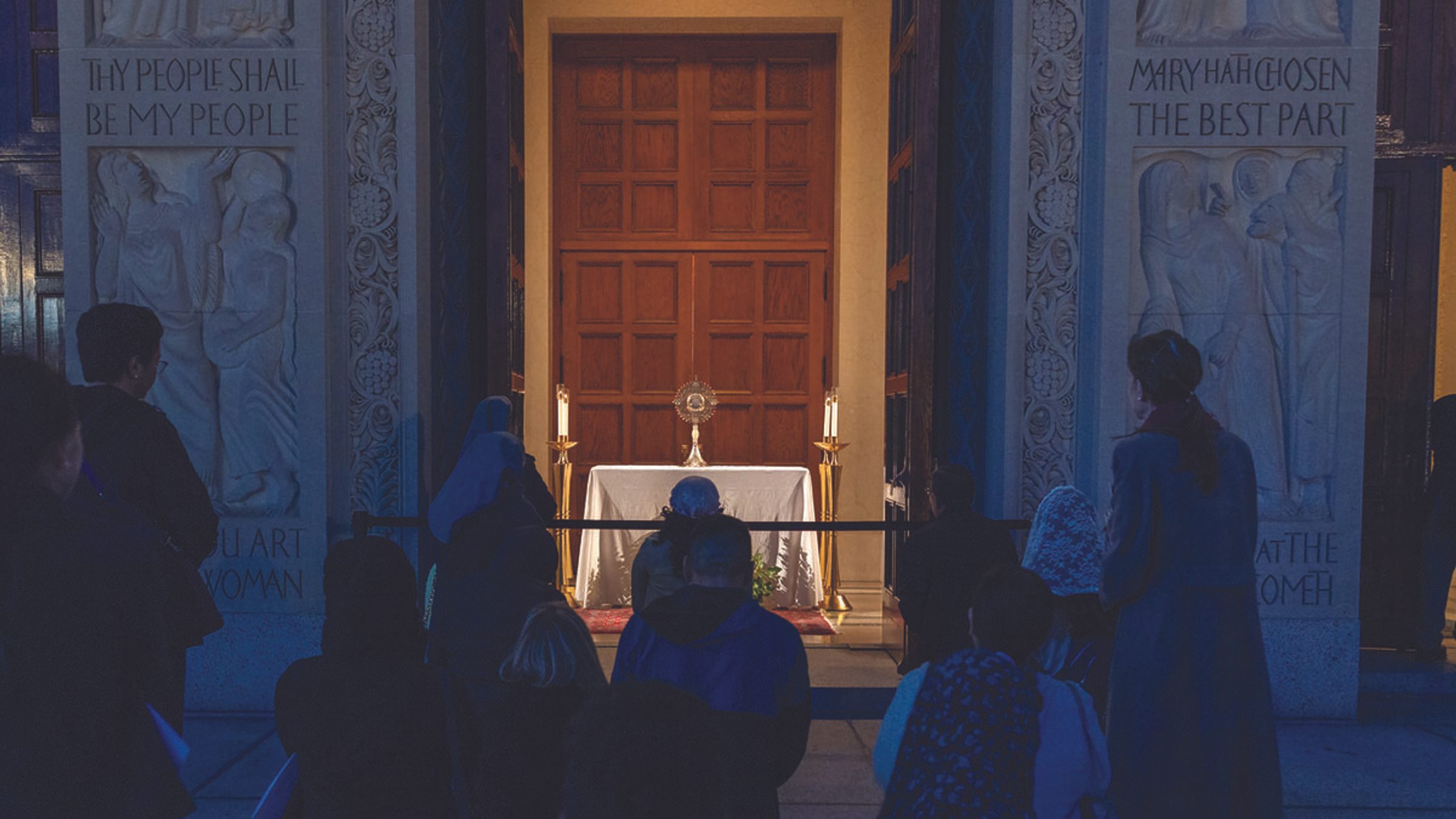 Each Lent, the National Shrine hosts “24 Hours for the Lord: 40 Hours Devotion.” This year’s observance began with the cardinal’s opening Mass and will conclude with a closing Mass on Saturday, March 9, at 4:30 p.m. followed by a Eucharistic procession and Solemn Benediction.