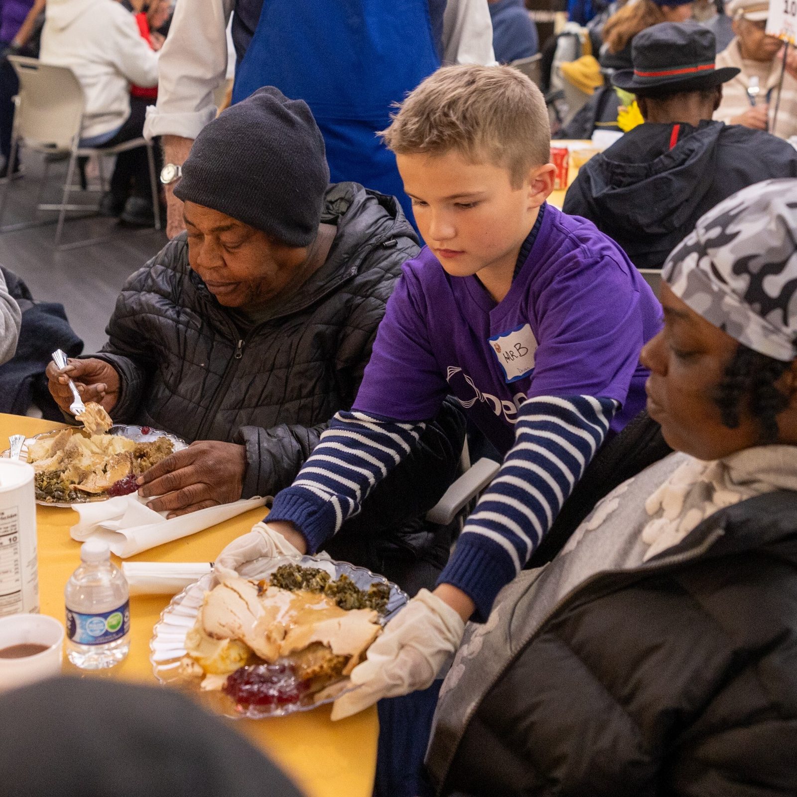 The community meal, offered through Catholic Charities’ St. Maria’s Meals program, seeks to foster a sense of community among guests and volunteers in the spirit of Thanksgiving.