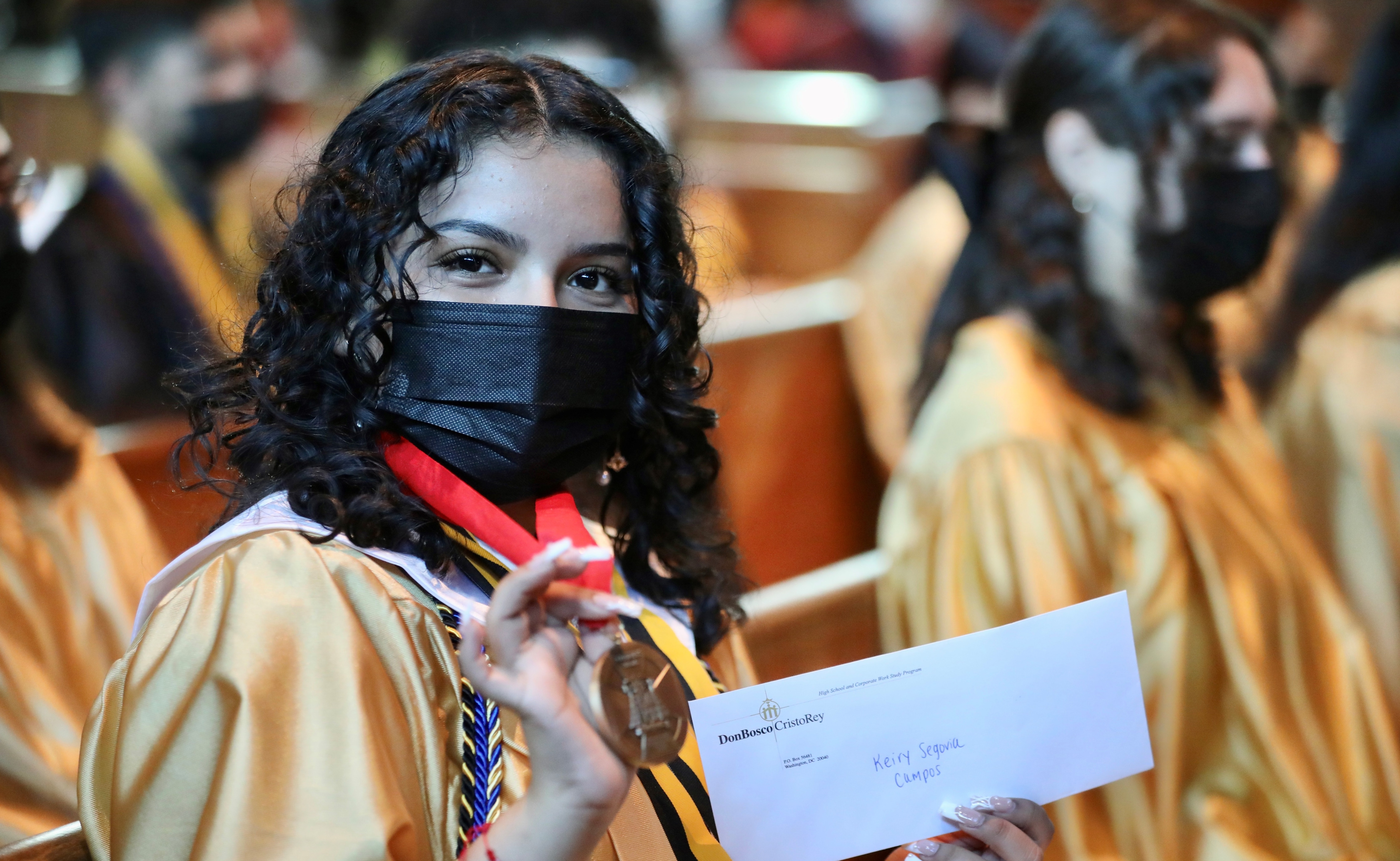 As a catechist in her parish’s religious education program, Segovia Campos has prepared several youth for their First Communion at St. Bernard’s. While at Don Bosco Cristo Rey, she was actively involved at school as the general secretary of the Youth Ministry Team and as a student leader, assisting with retreats, liturgies, and activities throughout the year.