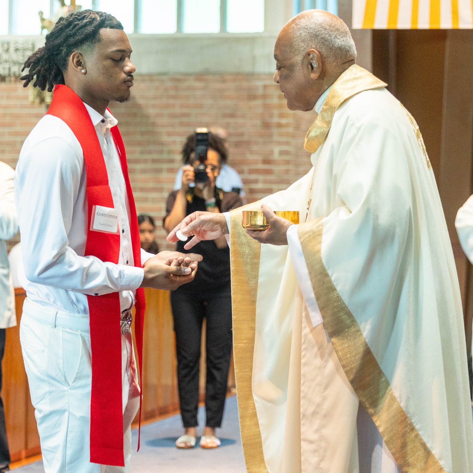 According to the cardinal, the families of those joining the Church will also be impacted. He noted that one student from Elizabeth Seton High School was among the students receiving sacraments. Tabitha Emakpor from Seton was confirmed at the Mass.
