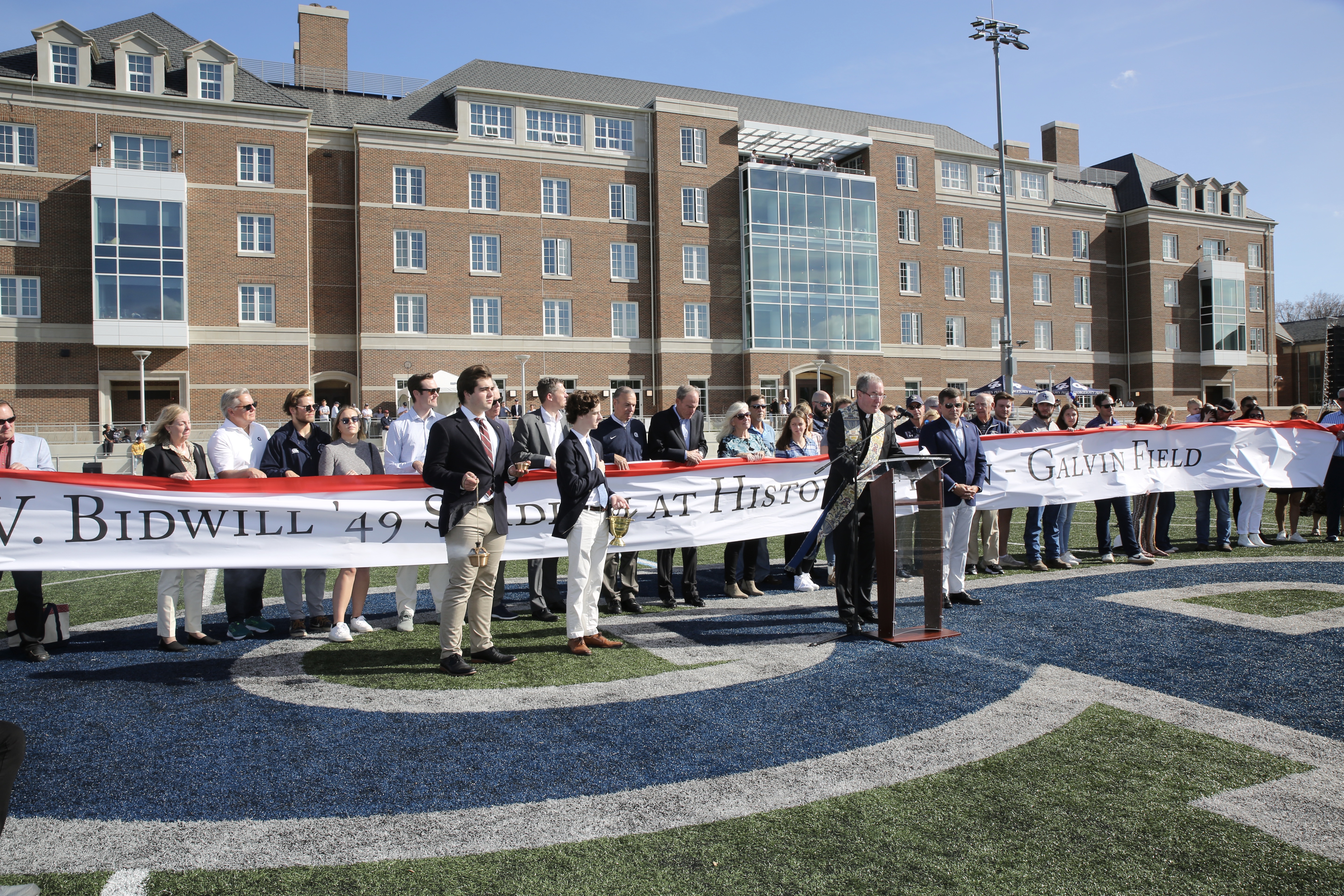 Dedicated on Nov. 5, the William V. Bidwill ’49 Stadium at historic Fegan-Galvin Field hosts Hoya football games, in addition to lacrosse and soccer matches. Bidwill, who died in 2019, was a Chicago-born boarding student at Prep and kicker and fullback on the varsity football team who later become owner of the St. Louis and Arizona Cardinals NFL team. The franchise started in Chicago and moved south to St. Louis before its 1988 move to its current Arizona home.