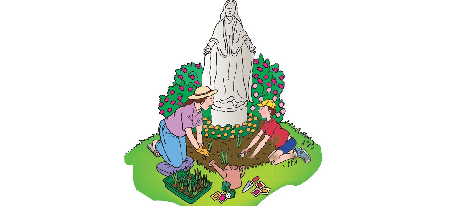 Look for a variety of flowers so that the garden is always in bloom from early spring through the first frost, and choose a mixture of colors. White flowers symbolize Mary’s joys, red flowers symbolize her sorrows, and gold (yellow) flowers symbolize her glories.