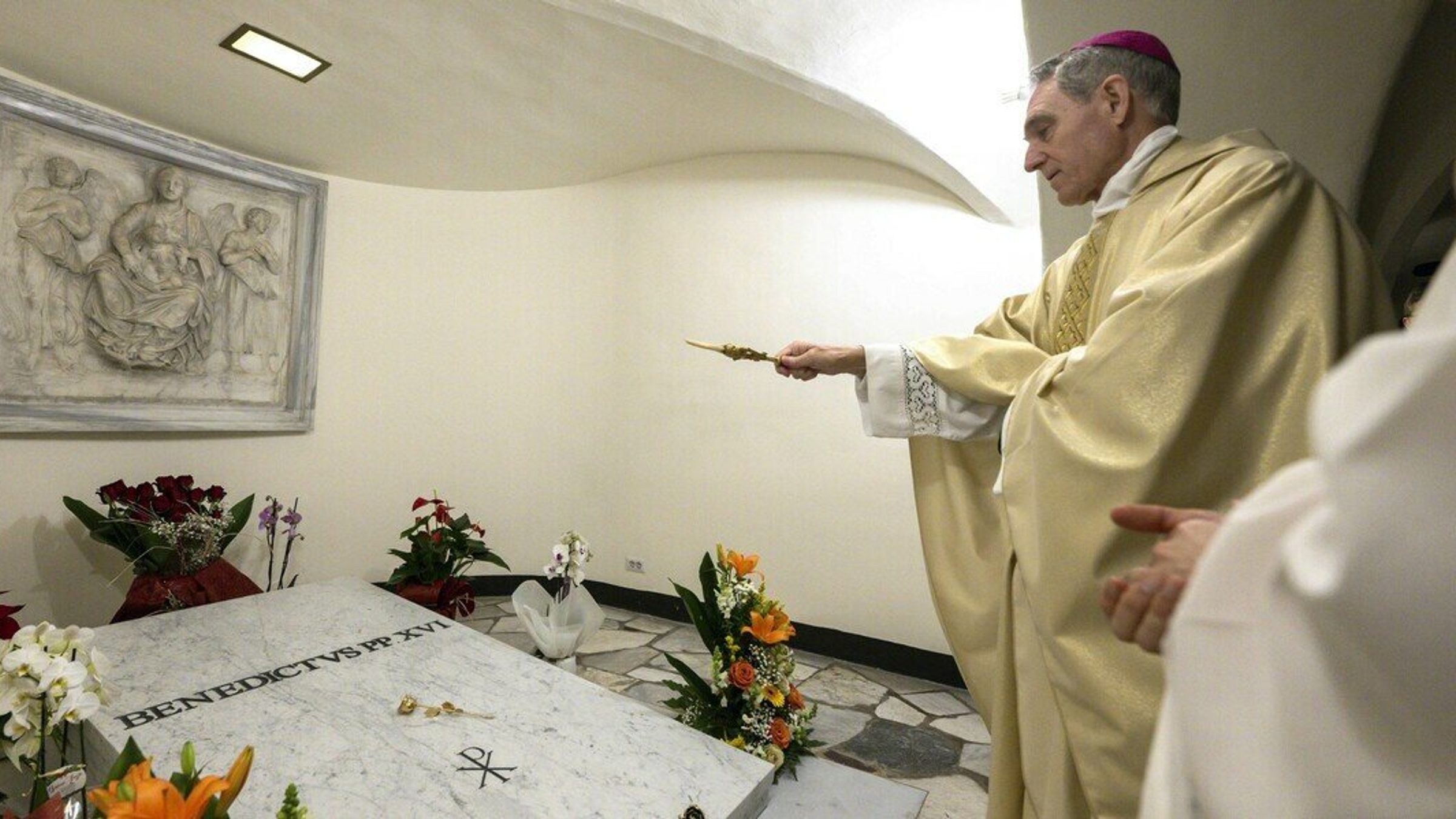 Before the Angelus, Archbishop Georg Gänswein, Pope Benedict's former personal secretary, presided over a memorial Mass at the Altar of the Chair in St. Peter's Basilica. German Cardinal Gerhard Müller and Swiss Cardinal Kurt Koch, prefect of the Dicastery for Promoting Christian Unity, concelebrated the liturgy.