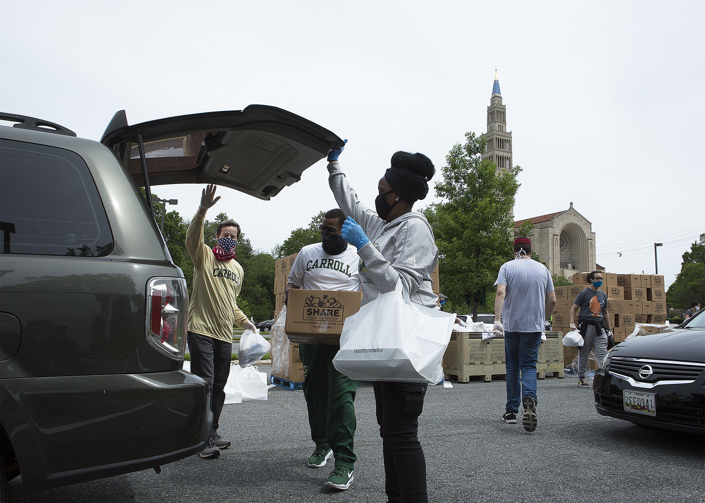 Catholic Charities of the Archdiocese of Washington provided 800 prepared meals and 800 boxes of groceries to needy families May 19 during a massive distribution at the parking lot of the Basilica of the National Shrine of the Immaculate Conception in Washington, D.C.