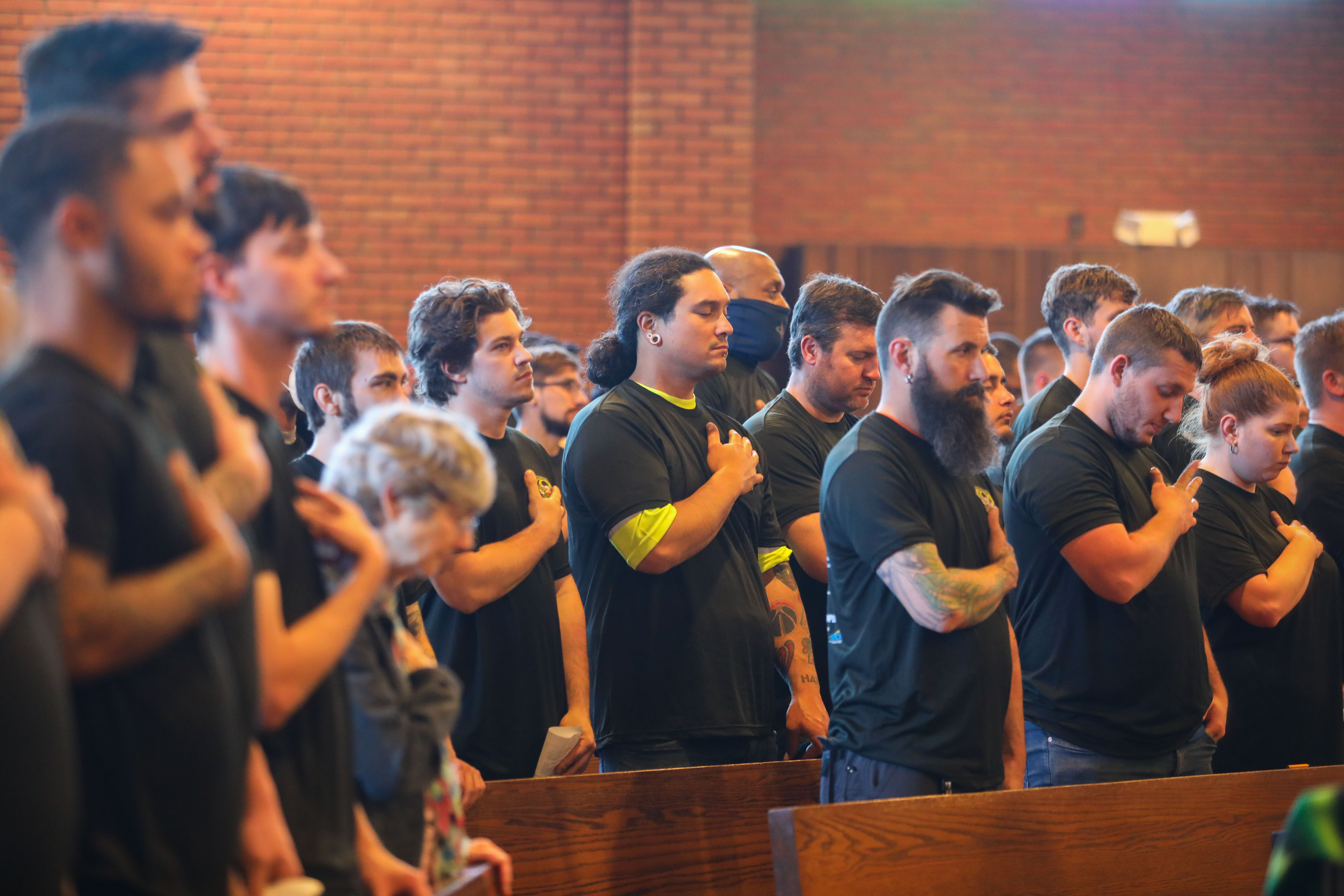 Then Father Jordan asked people to stand for “a sacred moment, now in remembrance, the reading of the names of our 19 brothers who have died since April 28, 2021.” The priest noted that 13 of the 19 men who died were Latinos, and all 19 who died at job sites were non-union workers.