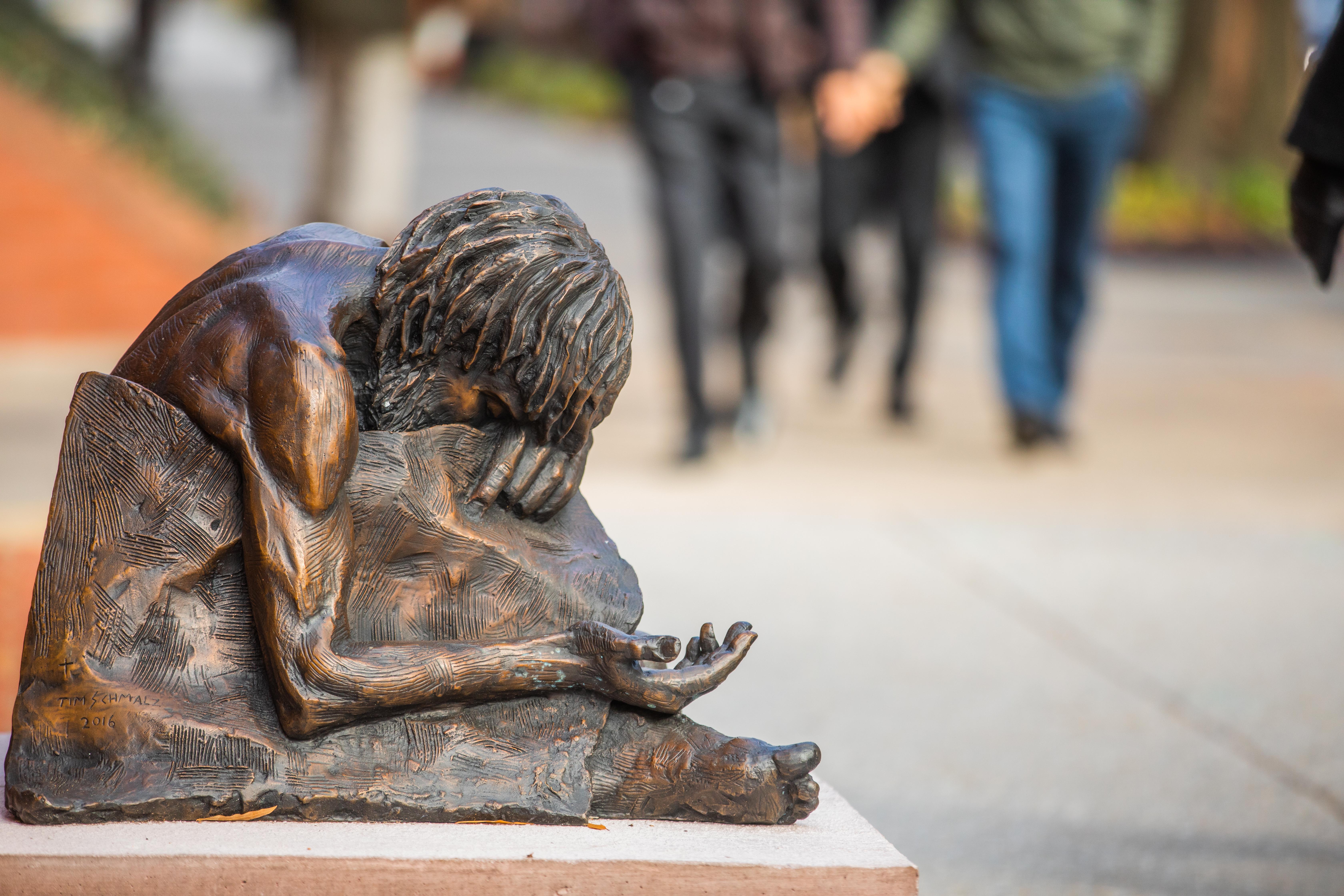 “We want people to be aware that when we give to the poor, give drink to the thirsty, clothe the naked, we are doing so to Jesus. Not just for the sake of doing it, but doing something to the person of Jesus,” Msgr. Jameson said. “That statue represents those in need and the call to answer Matthew 25, and that is extremely important.”