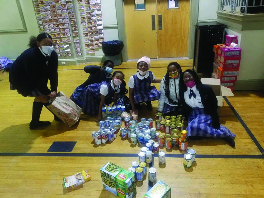 Students from St. Augustine Catholic School in Washington, D.C. show some of the more than 1,800 food items they collected to help feed the less fortunate in the Washington, D.C. metropolitan area. (Photo courtesy of St. Augustine Catholic School)
