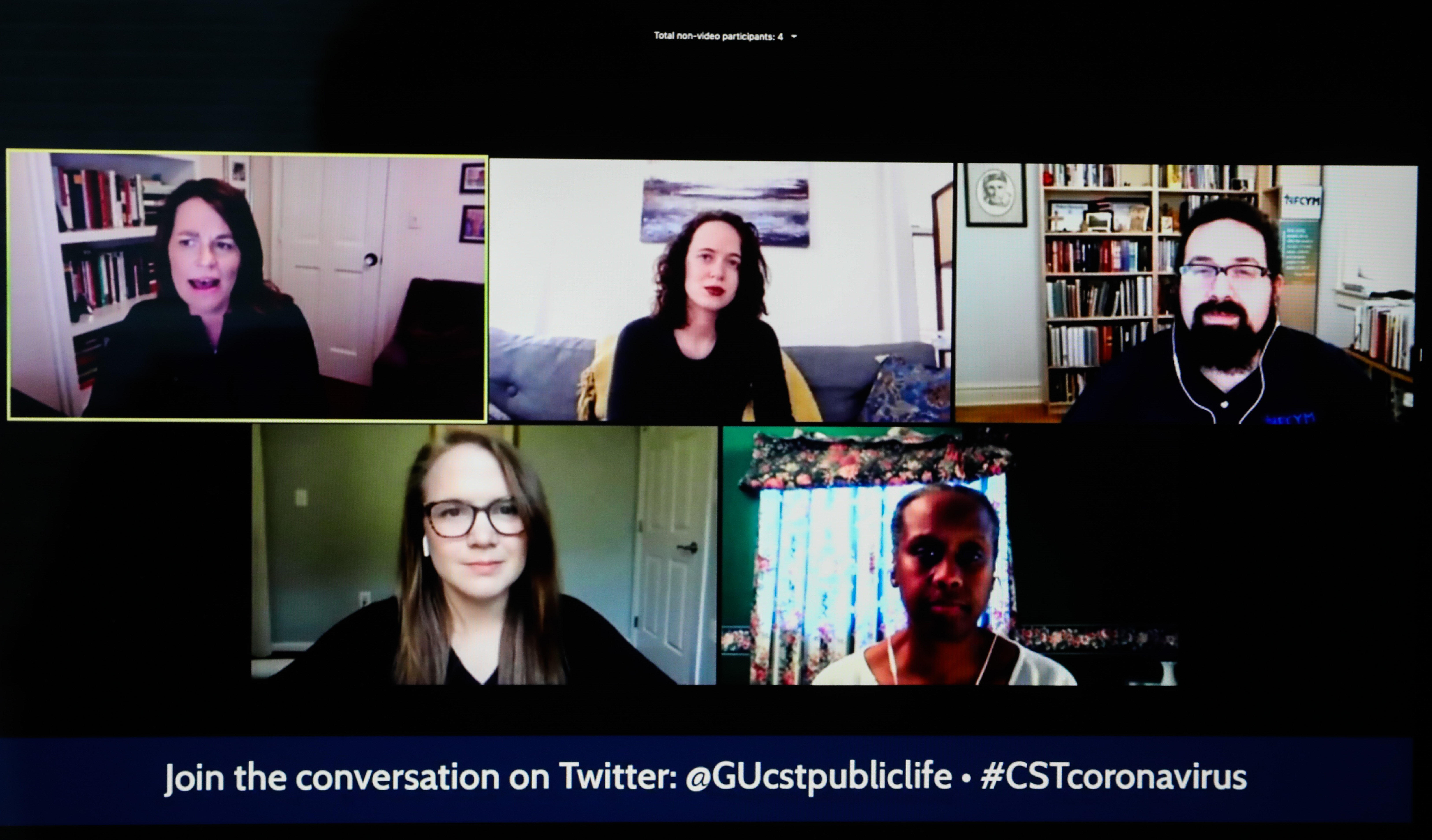 Kim Daniels, associate director of the Initiative on Catholic Social Thought and Public Life, moderated a panel of young leaders from around the country who are engaged in ministry, service and the media. The panelists shared their experiences on facing a new age of social distancing and how they are continuing to pursue community and faith during this crisis.