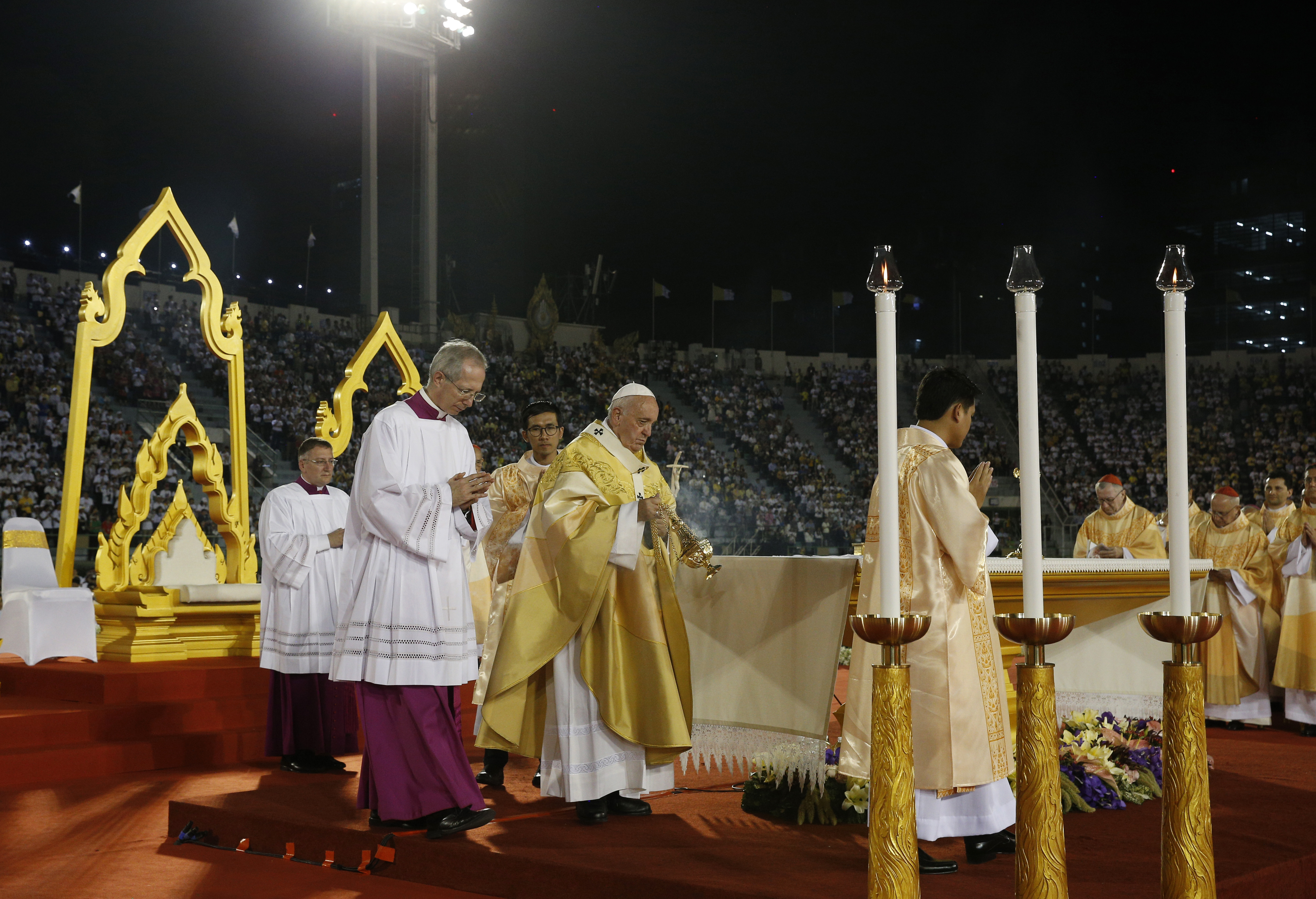 Pope Francis said he came to Thailand for the anniversary not to encourage some kind of nostalgia for the past, but to help spark "a fire of hope" to help Catholics today reach out to others with the same "determination, strength and confidence" the early missionaries had.
