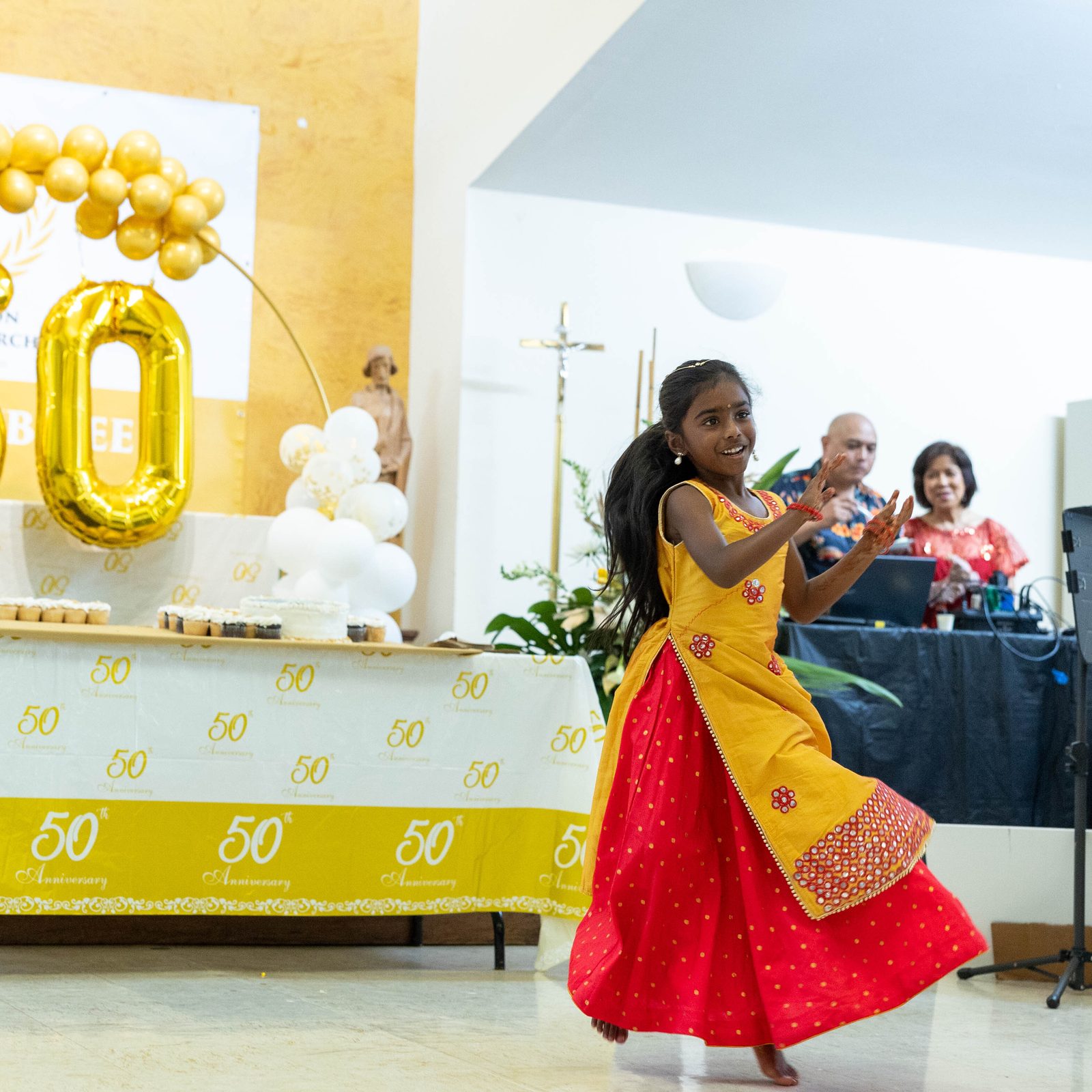 After about 900 people attended Mother Seton’s 50th anniversary Mass, the parishioners then gathered together to sample the home-cooked cuisine from five continents and enjoy music and dances from different cultures. As the priest made his way through the crowded parish center, he said, “This is what brings us together. They love their faith, and they love the Church.”