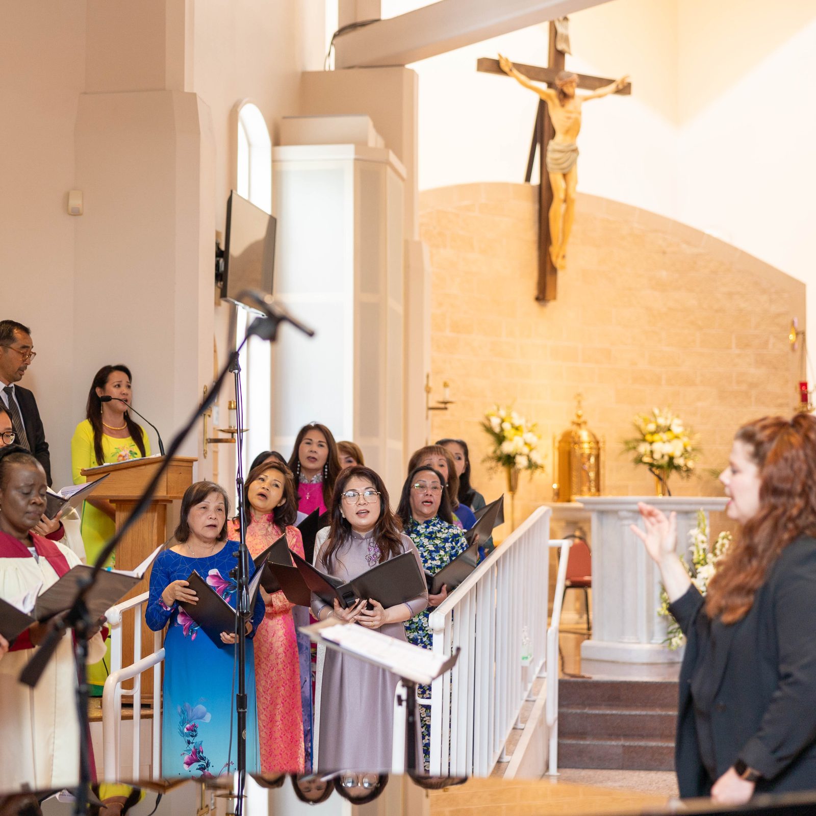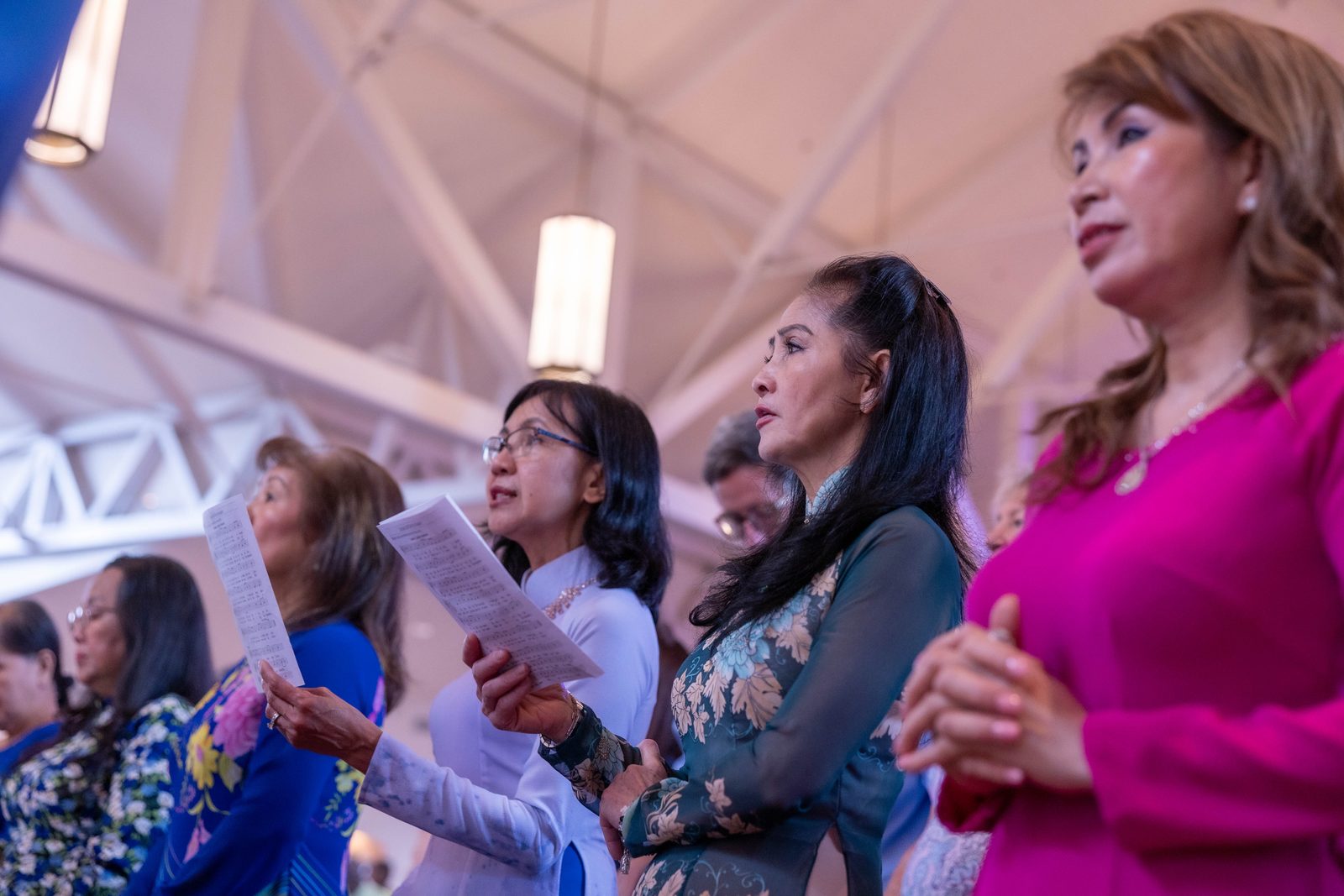 “It’s like a second family for me,” said Clow, a parishioner at Mother Seton since 1985 who sings with the Vietnamese choir there. She wore a traditional bright blue silk dress with floral patterns.