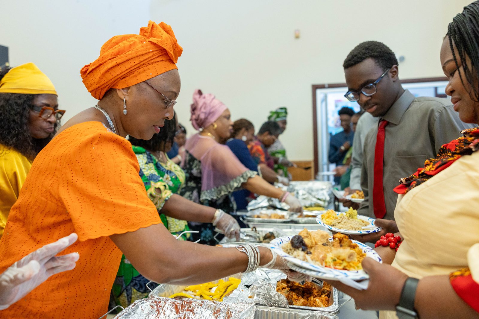 In another part of the parish center, Adanna Ukachi, a native of Nigeria, was serving jollof, a rice dish. She joked that there is a running competition among African countries, including Nigeria, Ghana, Gambia, Liberia and Senegal, about who makes the best jollof.