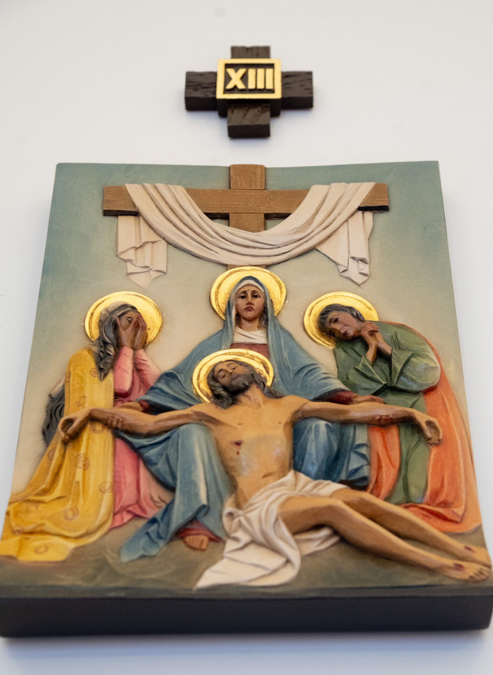 The Grant T. Orr Company helped procure the handmade crucifix and Stations of the Cross from the Demetz Art Studio in Italy, a family-run business that has created ecclesiastical art since 1872.