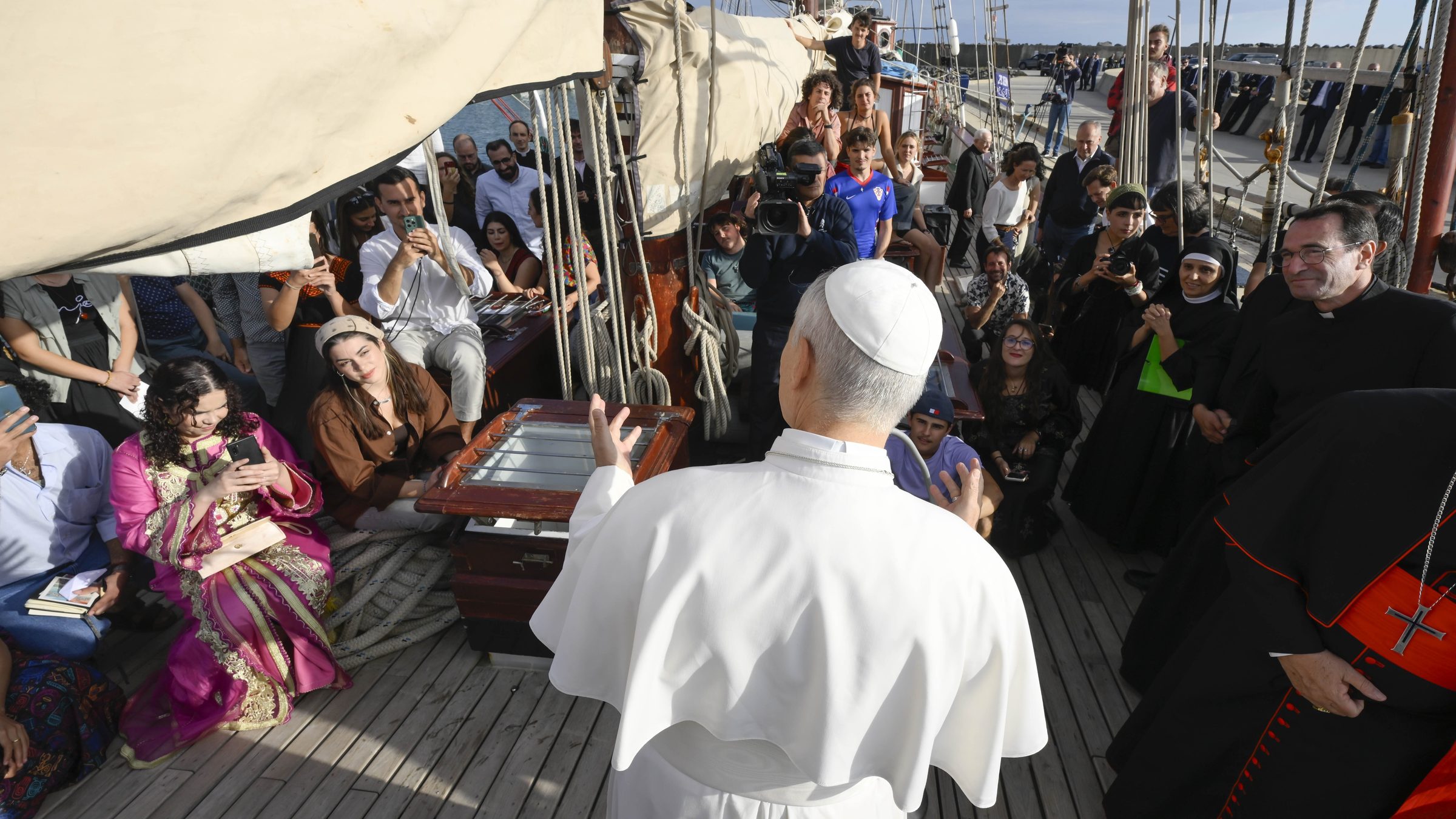 The name of the boat and, even more, the efforts of the young people "are indeed a sign of hope for the Mediterranean and the world," he told them.