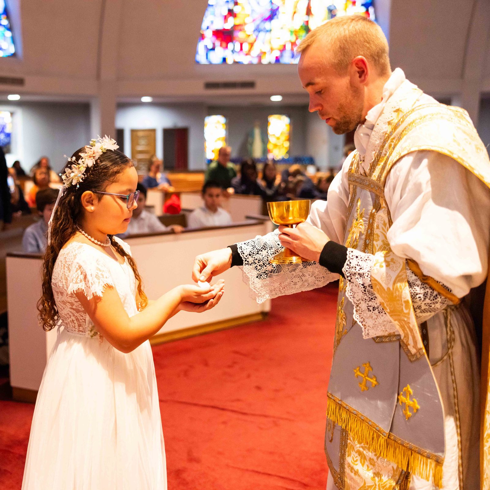 “We have a lot to celebrate today,” said Father Nathanael Anderson, a parochial vicar at St. Mary’s Parish who presided at the Mass and gave those students their First Communion.