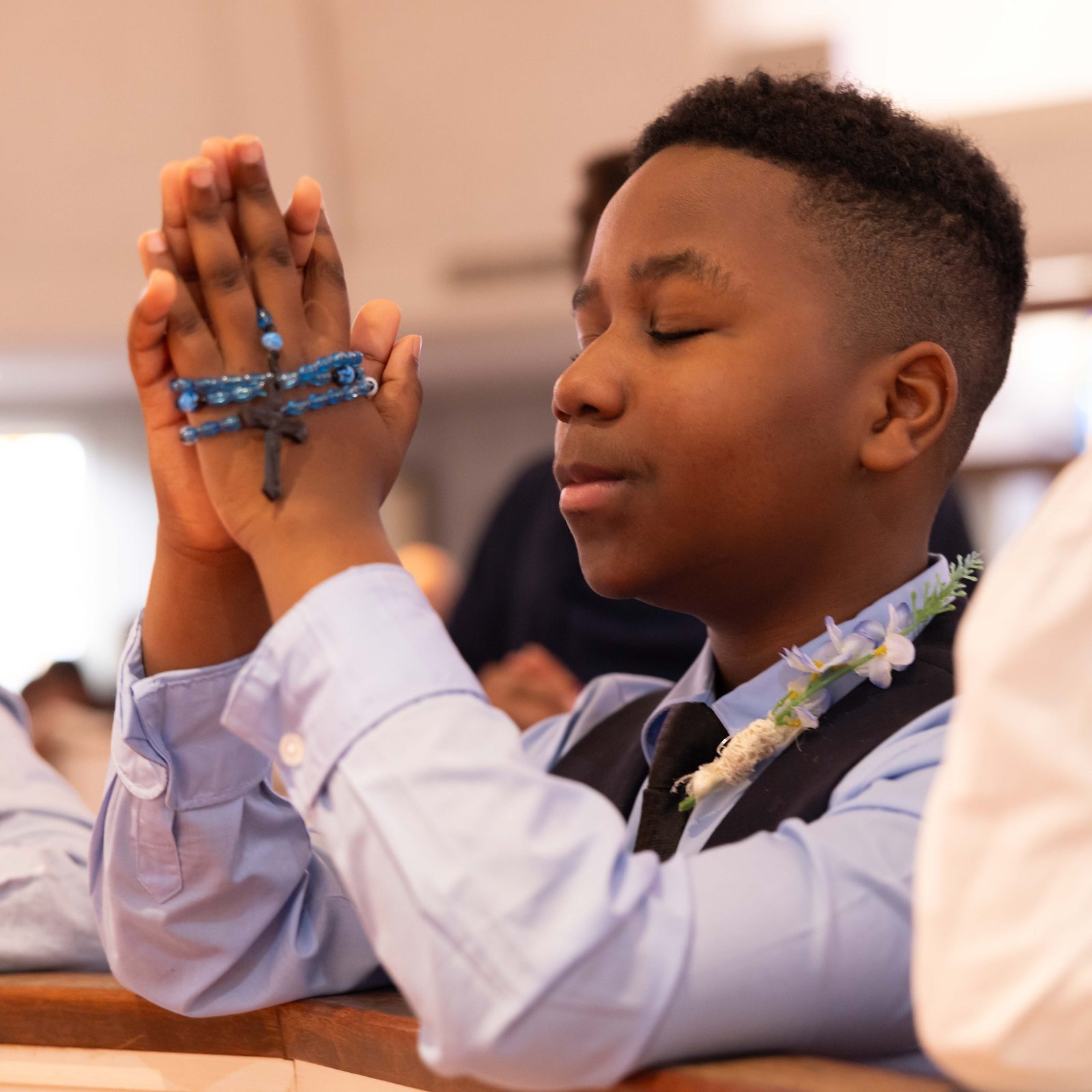 After receiving his First Communion that morning, eighth grader Blake Anthony said, “I feel like I’m truly committed to the Catholic faith. I was a bit behind my sacraments,” he explained, adding that now he is excited that he will later get to join his classmates in receiving the Sacrament of Confirmation.