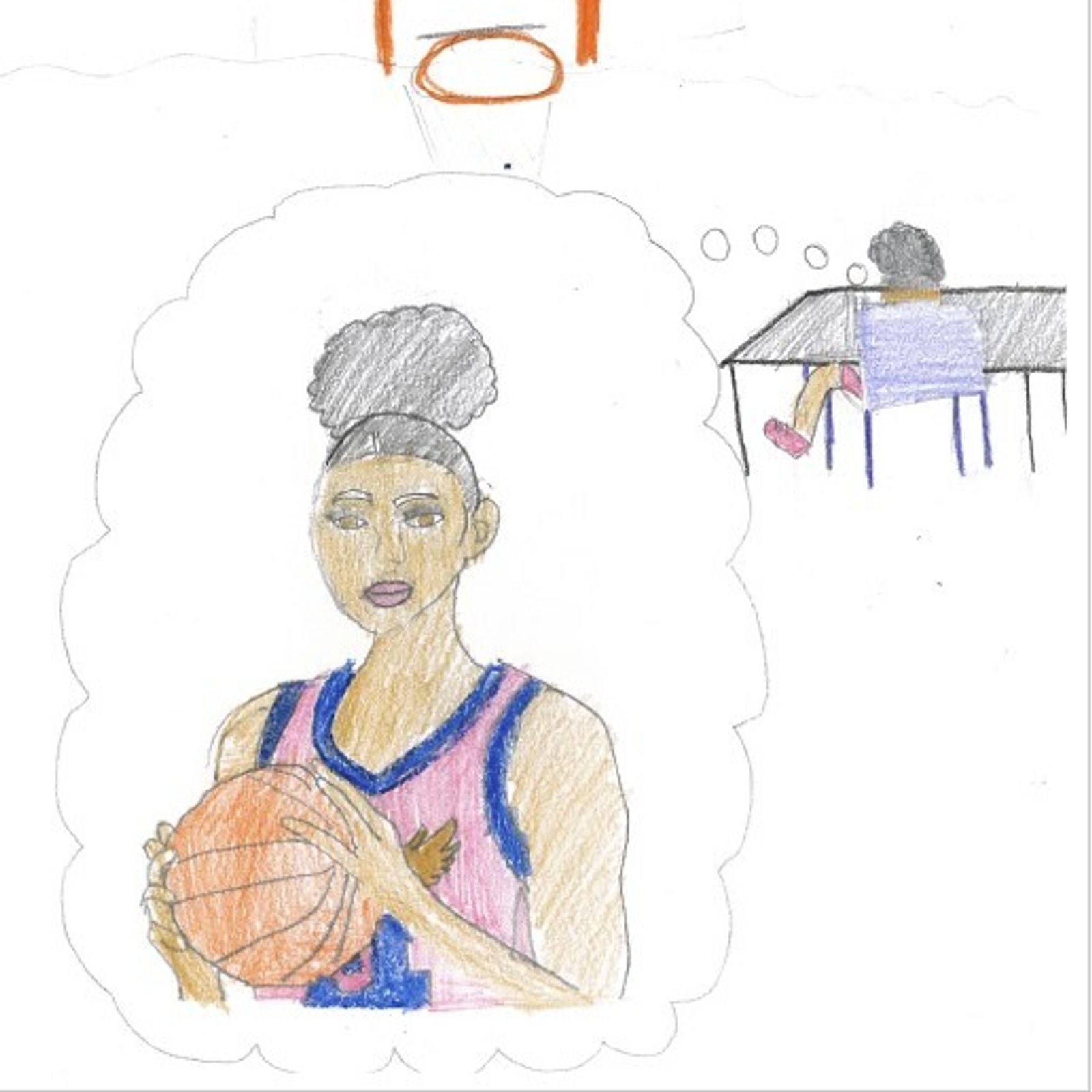 “When I grow up, I want to be in the WNBA. A few reasons why are… I would get to play the sport that I love, and I would get to play with a lot more amazing women!!!” – Artwork and writing by Abigail Thomas, fifth grade, St. Augustine Catholic School, Washington, D.C.