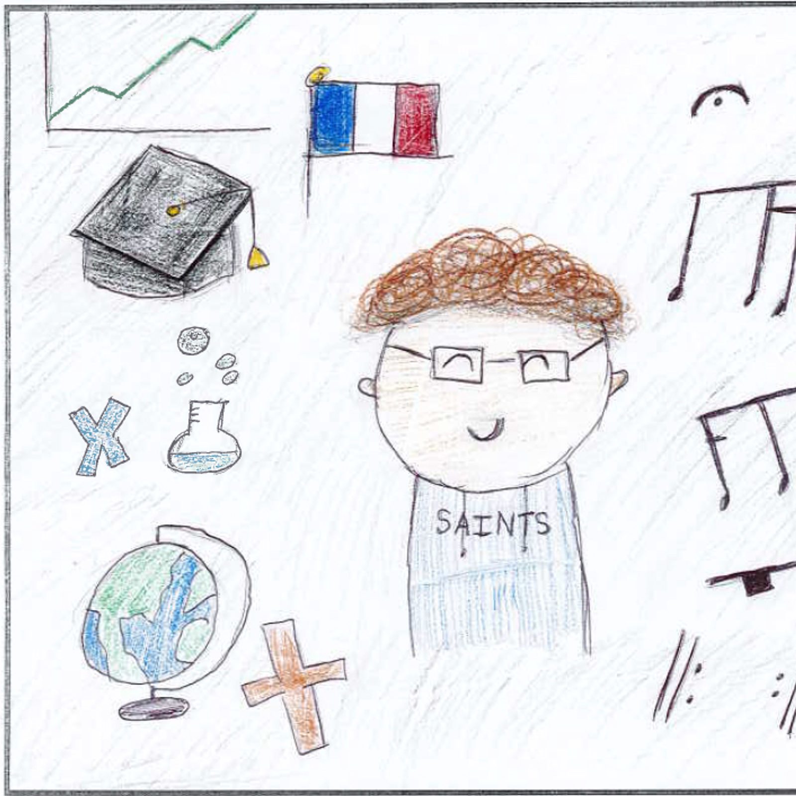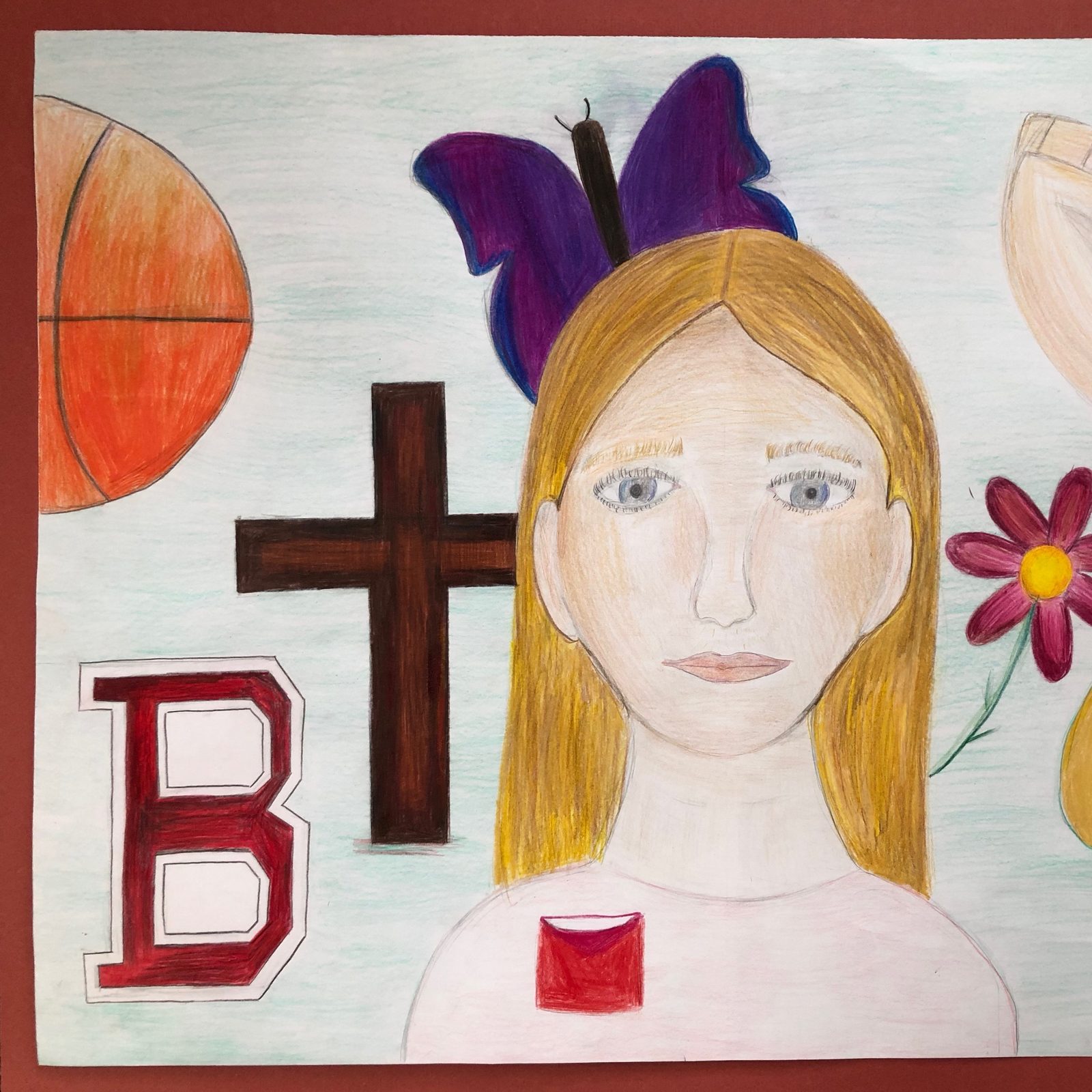 “I created this drawing to show all of my dreams and things I aspire for. I dream of playing basketball in college and becoming a singer. I have a lot of dreams for the future, and even though I don’t know what I will end up being, I know if I put my trust in God, He will put me on the right path for my life!” – Artwork and writing by Maddie Perraut, eighth grade, St. Bartholomew Catholic School, Bethesda