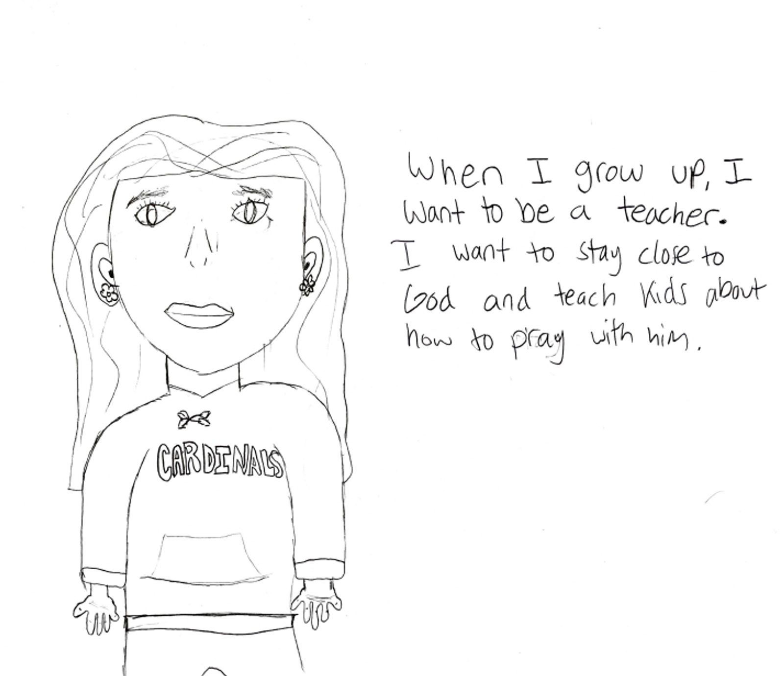 “In the future, I want to be a teacher and teach little kids.” – Artwork and writing by Molly Manfreda, sixth grade, Holy Redeemer Catholic School, Kensington, Maryland