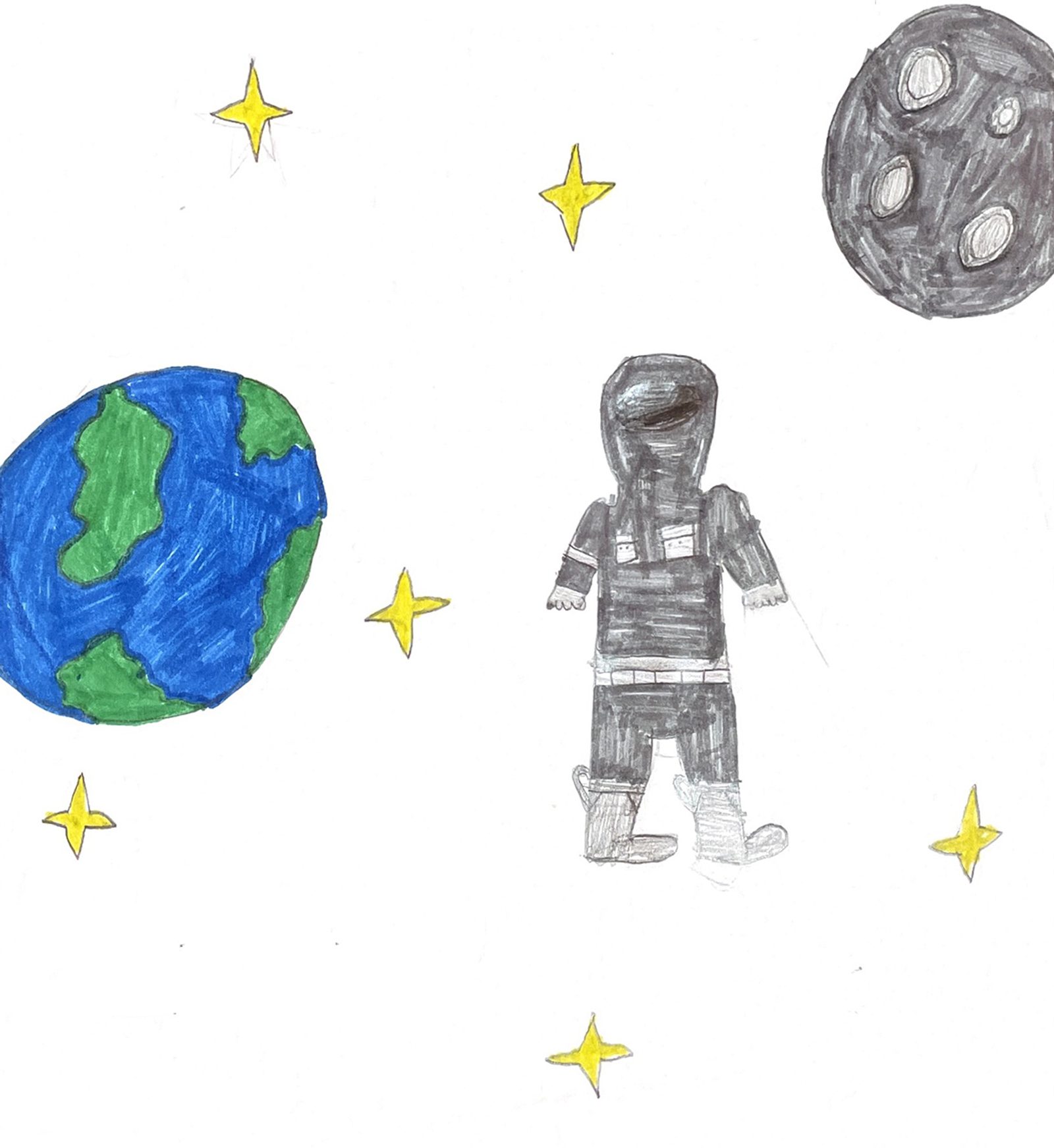 “The future is unpredictable, but dreaming is still possible. When I grow up, I hope to finish high school with a high GPA. If I get the opportunity, I will apply to Princeton and keep working hard. My dream is to be accepted to Princeton University and become a space engineer. I want to design different rockets and spacecrafts that are new to our knowledge. Hopefully if I keep working hard, then maybe I can achieve this goal.” – Artwork and writing by Abigail Getachew, eighth grade, St. Elizabeth Catholic School, Rockville