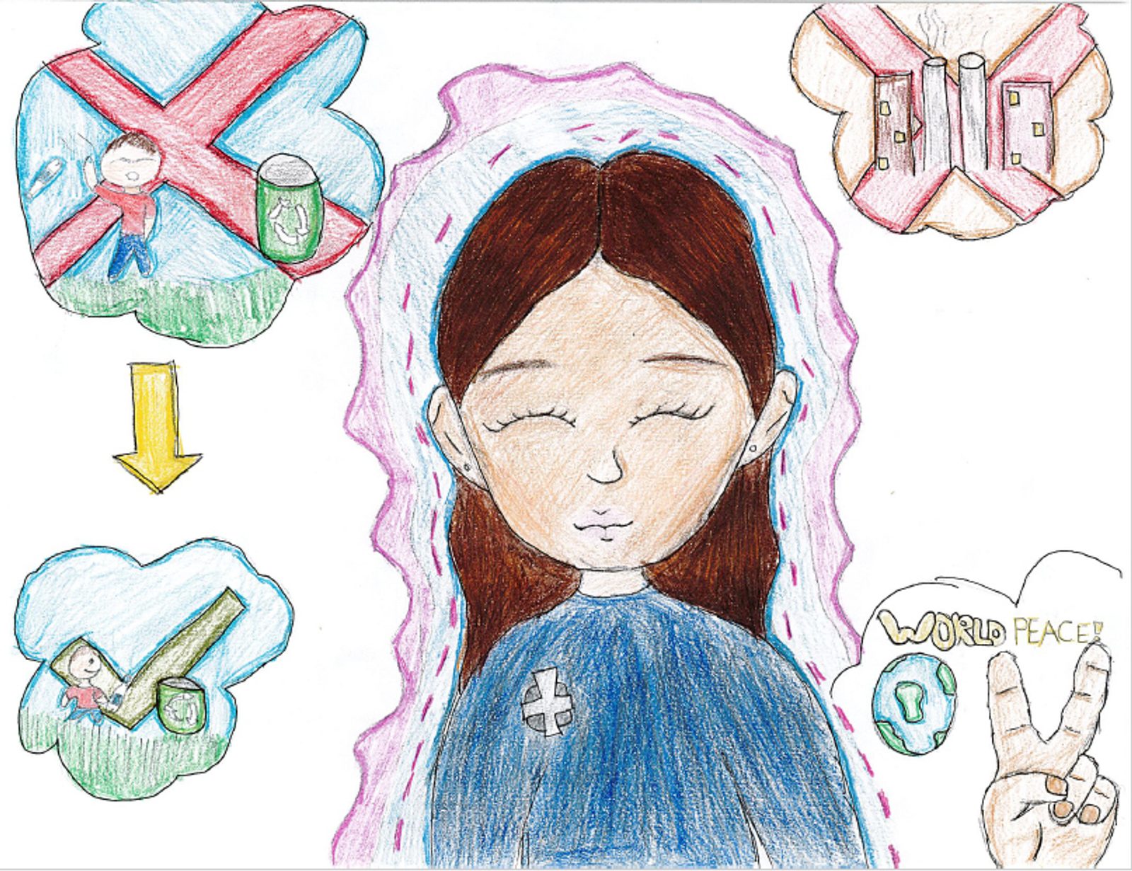 “My dream for the world is to make people stop littering (and causing) pollution, and to have world peace.” – Artwork and writing by Lynne Gonzales, seventh grade, St. Columba School, Oxon Hill