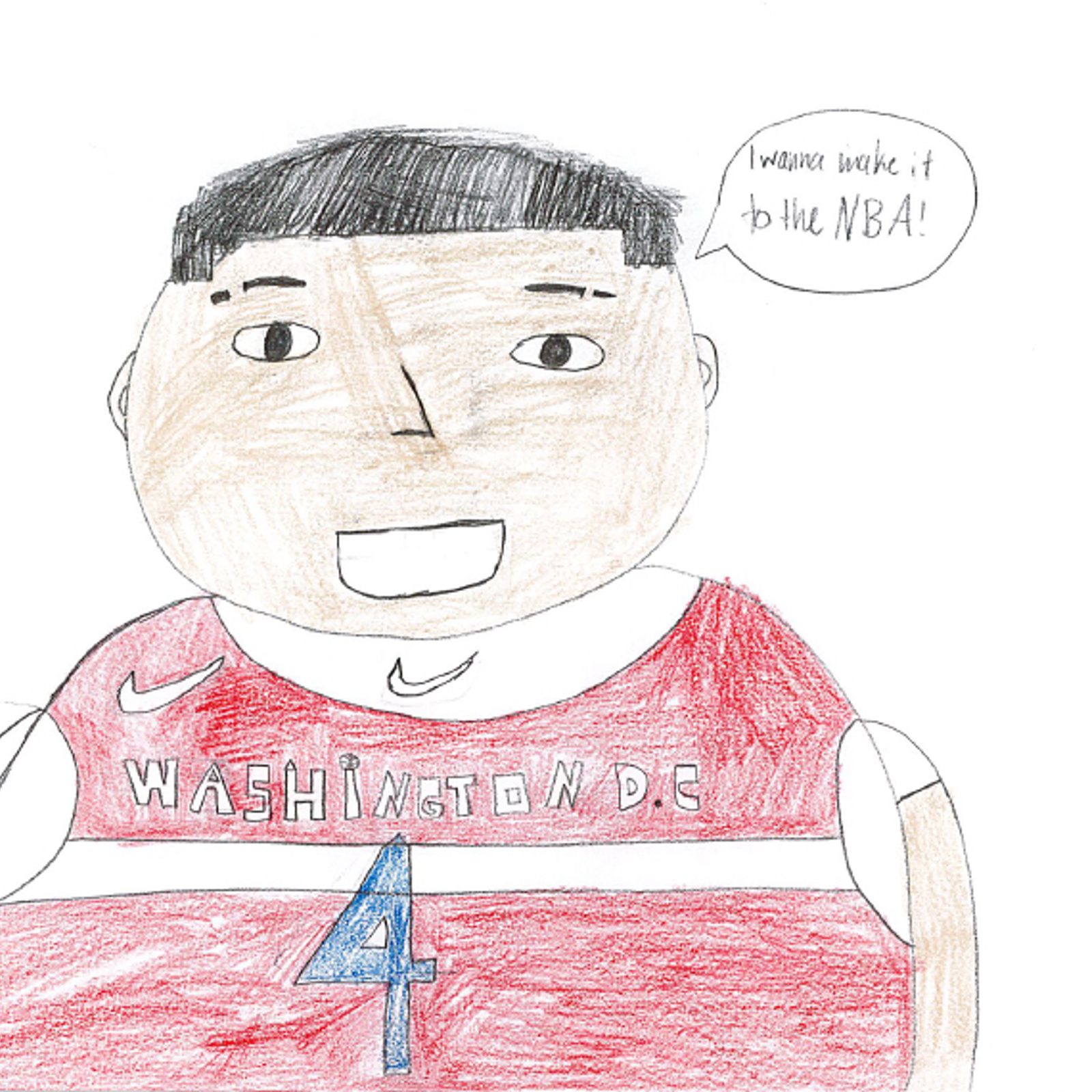 “My future goal and my dream is making it to the NBA. But there are many obstacles of making it there. You need to go to a good high school (and) a good college, and you just have to work hard to make it there.” – Artwork and writing by Saul Vergara, eighth grade, St. Columba School, Oxon Hill