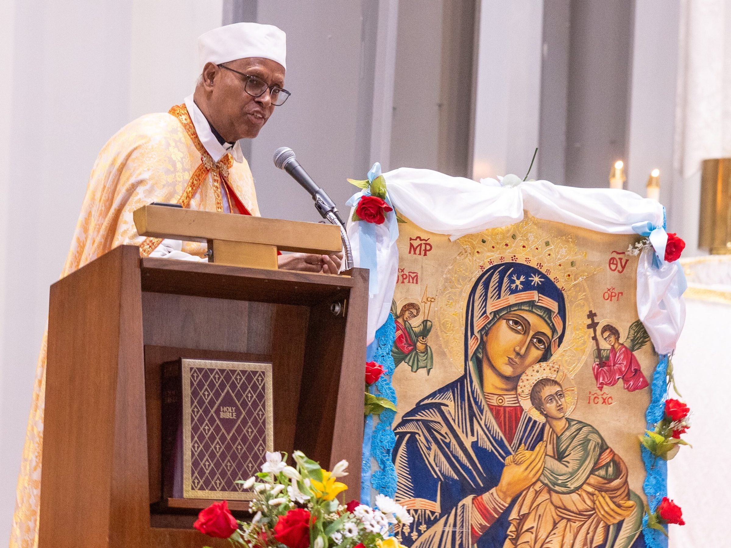 Letemariam Tesfat, a retired teacher at a daycare center who has been a member of the Kidane-Mehret community since it began, spoke about their devotion to Mary. She said Mary helped keep them together as a parish family and helped them find a church home.