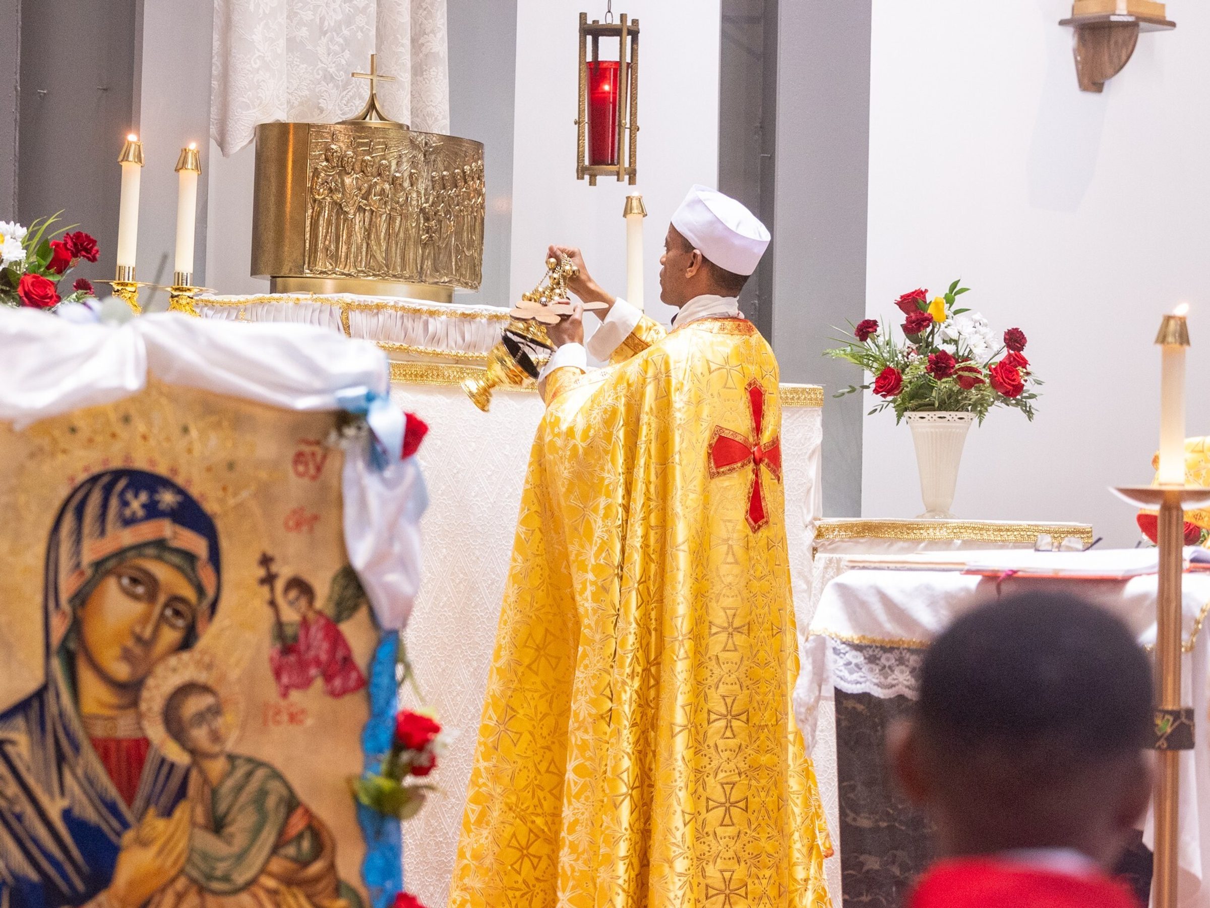 Father Abayneh Gebremichael – a priest of the Archdiocese of Addis Ababa, Ethiopia, who has served as the pastor of Kidane-Mehret since 2016 – was the main celebrant at the Mass. Addressing the congregation after Communion, he said, “Today we gather in joy and gratitude, for the Lord has done great things for us… Our dream has come true. We now have a permanent church.”