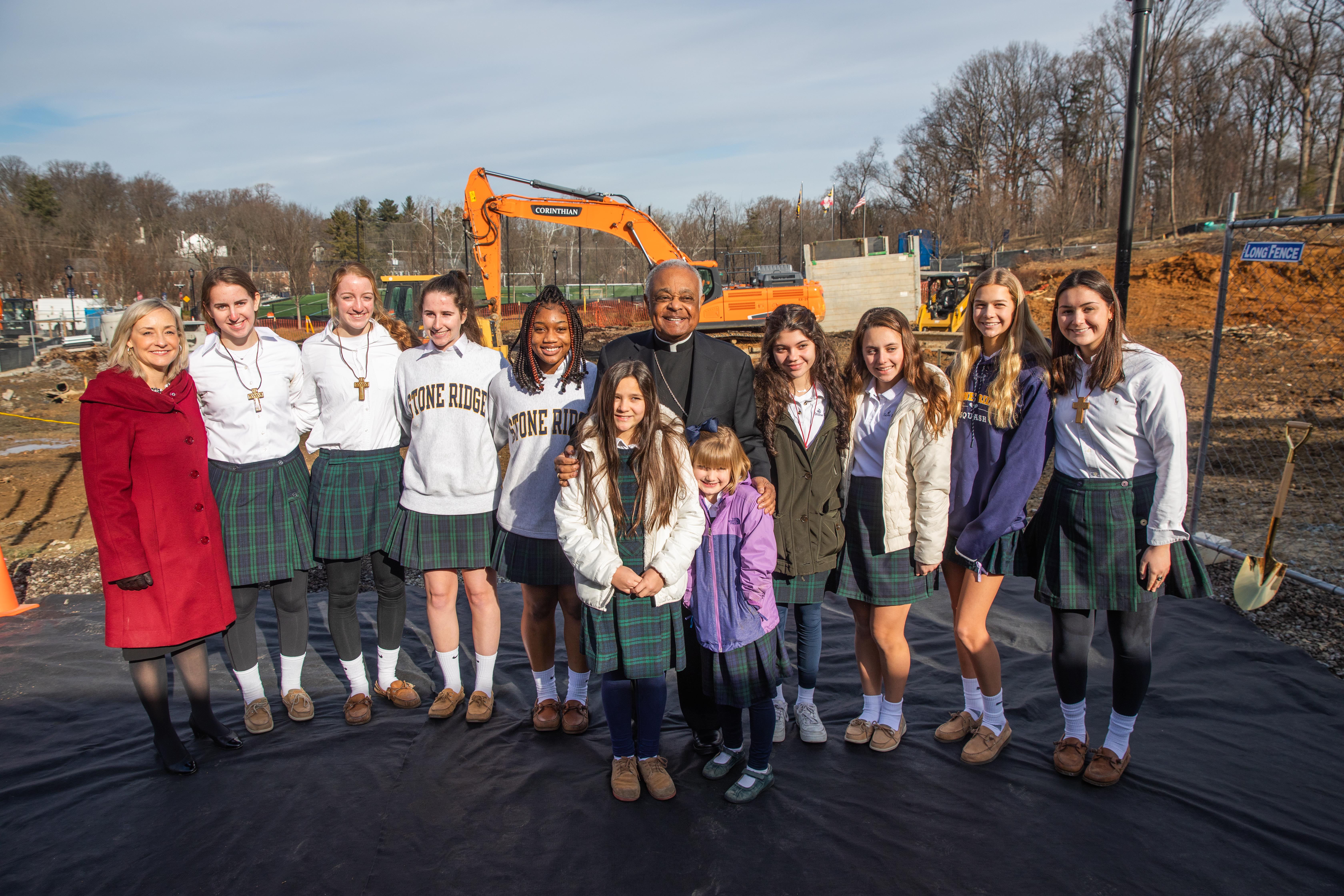 In the midst of construction for the new Student Life Center on the campus of Stone Ridge School of the Sacred Heart in Bethesda, Maryland, Washington Archbishop Wilton Gregory blessed the ground in a ceremony on Jan. 30, asking for God’s blessing on the many students who will benefit from the community cultivated at Stone Ridge School.