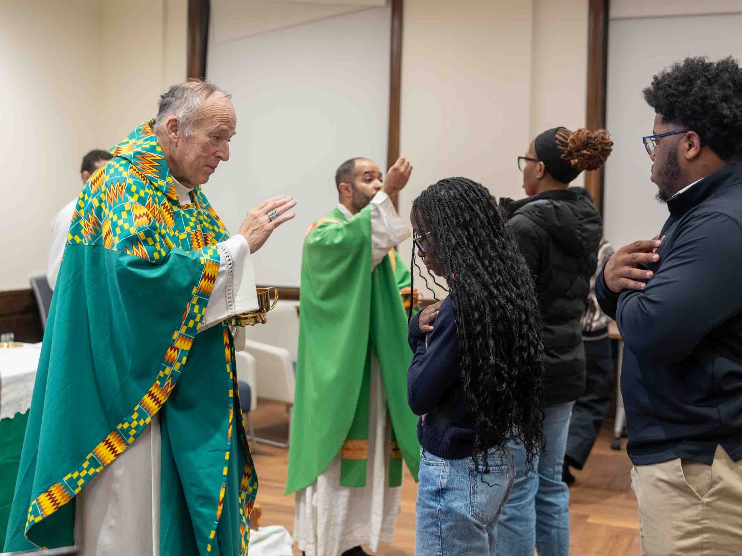 For the Mass, the 73 congregants packed into a Howard classroom at Frederick Douglass Memorial Hall named for the famed abolitionist included a mix of current students, alumni, professors, deans, parents and other guests. Howard University, one of the nation’s historically Black colleges and universities, was founded in 1867 in Washington, D.C.