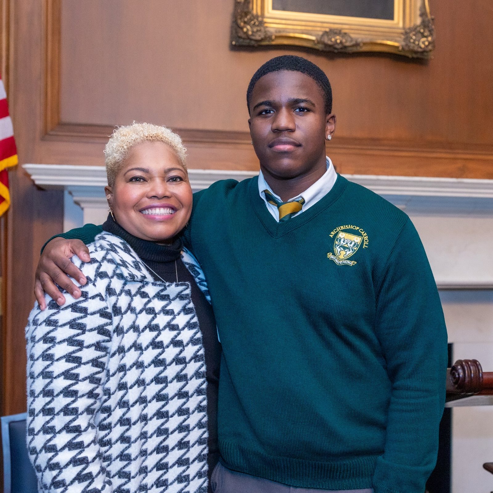 The guests at the anniversary gathering also included Aaron Marbury, a D.C. Opportunity Scholarship recipient who is a junior at Archbishop Carroll High School. He was joined there by his mother, Michelle Marbury, who noted that two of her three children are in the scholarship program. “It really has been a tremendous help for us,” she said.