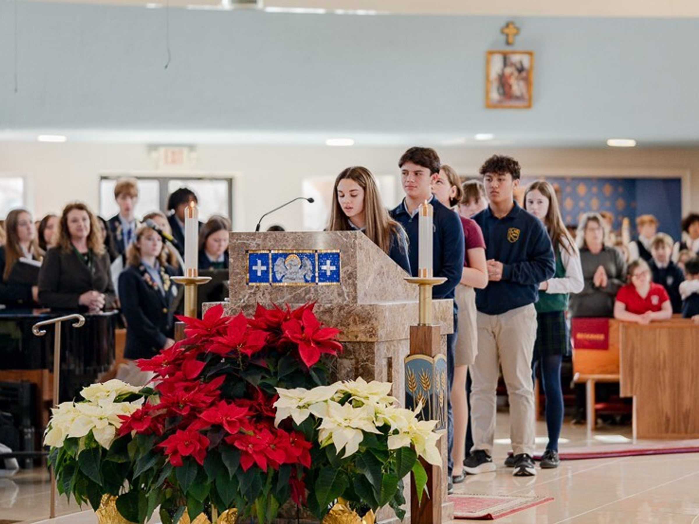 Students from Catholic schools across St. Mary’s County gathered Jan. 22 for a countywide Mass to celebrate the beginning of Catholic Schools Week. The liturgy brought together students, faculty, and staff from Little Flower School in Great Mills, St. John’s School in Hollywood, Mother Catherine Academy in Mechanicsville, St. Michael’s School in Ridge, and Father Andrew White, S.J. School in Leonardtown.