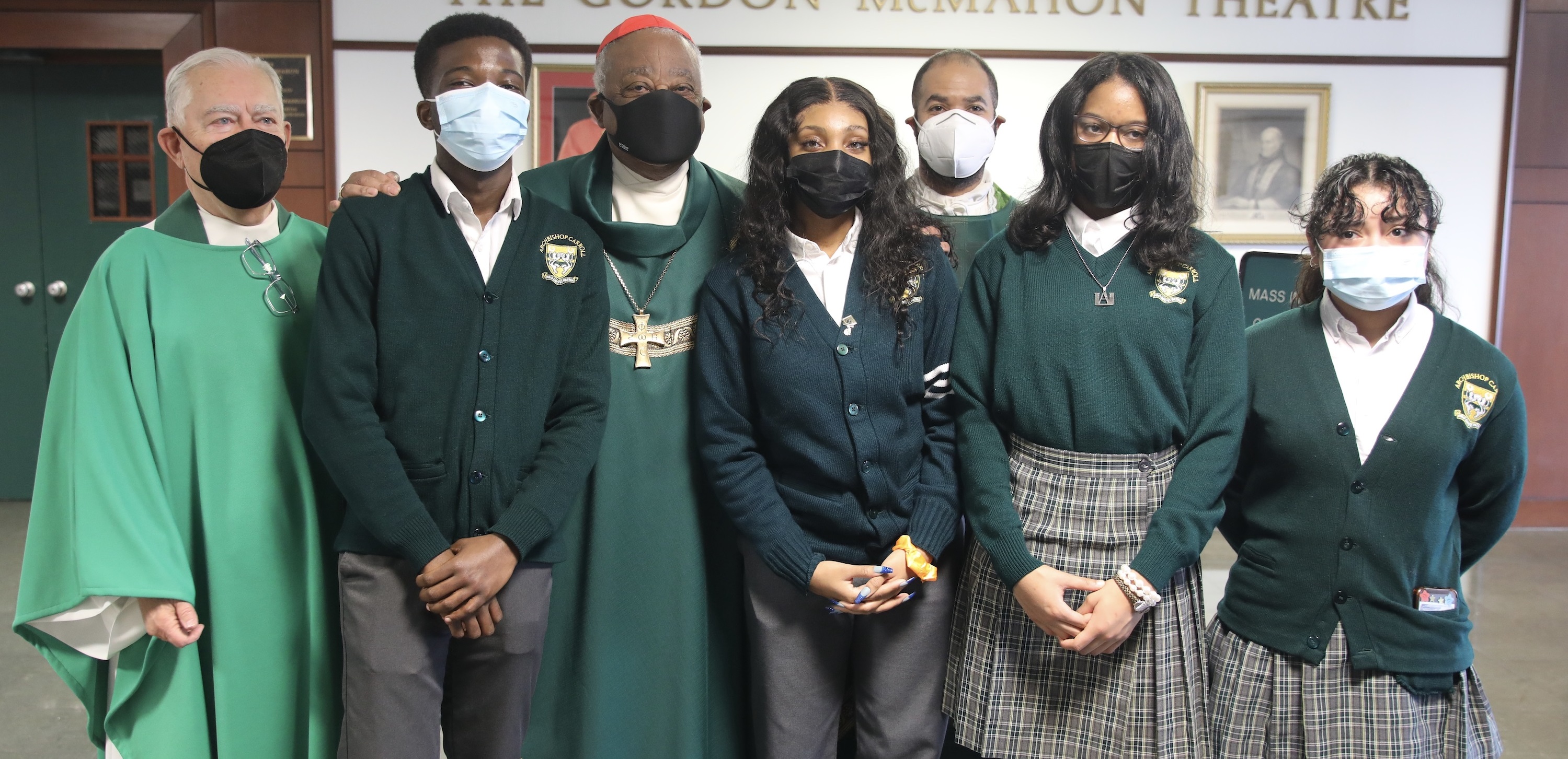 Because of the ongoing COVID-19 pandemic and the spike in cases of the omicron variant of the virus in the community, the Mass was offered in the school’s chapel with what Cardinal Gregory called a “small but worthy gathering of students and faculty.” The Mass was streamed over the school’s YouTube channel.