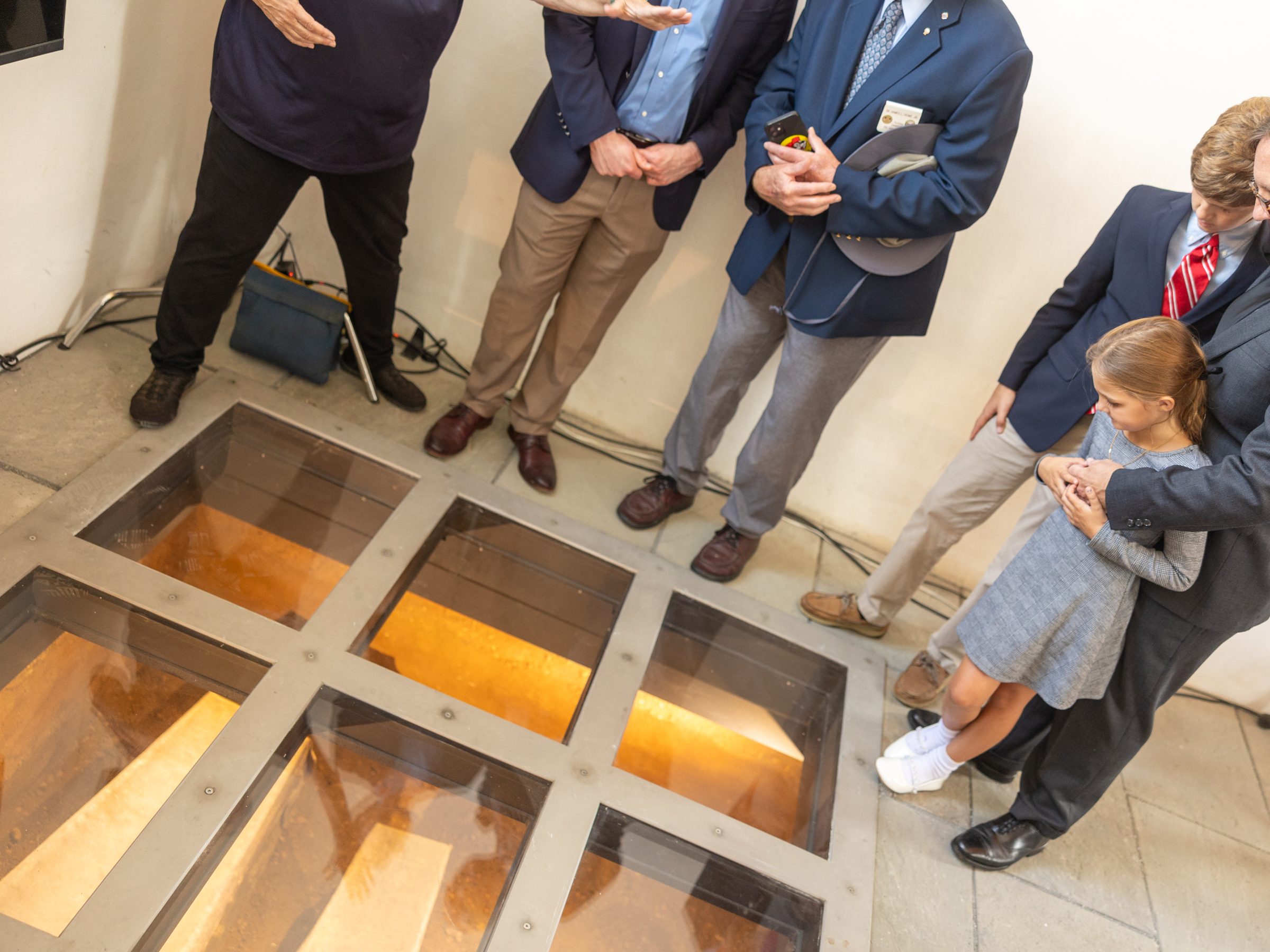 During the rite, Pearre carried a container with the remains of Philip Calvert’s infant son who had been buried in a small lead coffin at the chapel site. Excavations in the foundation there uncovered lead coffins with the remains of Philip Calvert, an early governor and chancellor of Maryland, his wife Anne Wolseley Calvert and an infant son. Philip Calvert was Cecil Calvert’s half-brother.
