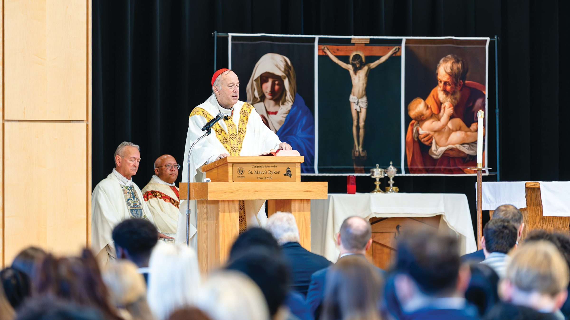 Washington Cardinal Robert W. McElroy visited St. Mary’s Ryken High School in Leonardtown on Dec. 3 to celebrate the Feast of St. Francis Xavier, the patron saint of the Xaverian Brothers religious order that sponsors the school. The liturgy served as the spiritual centerpiece of the school’s annual Founder’s Week celebration.
