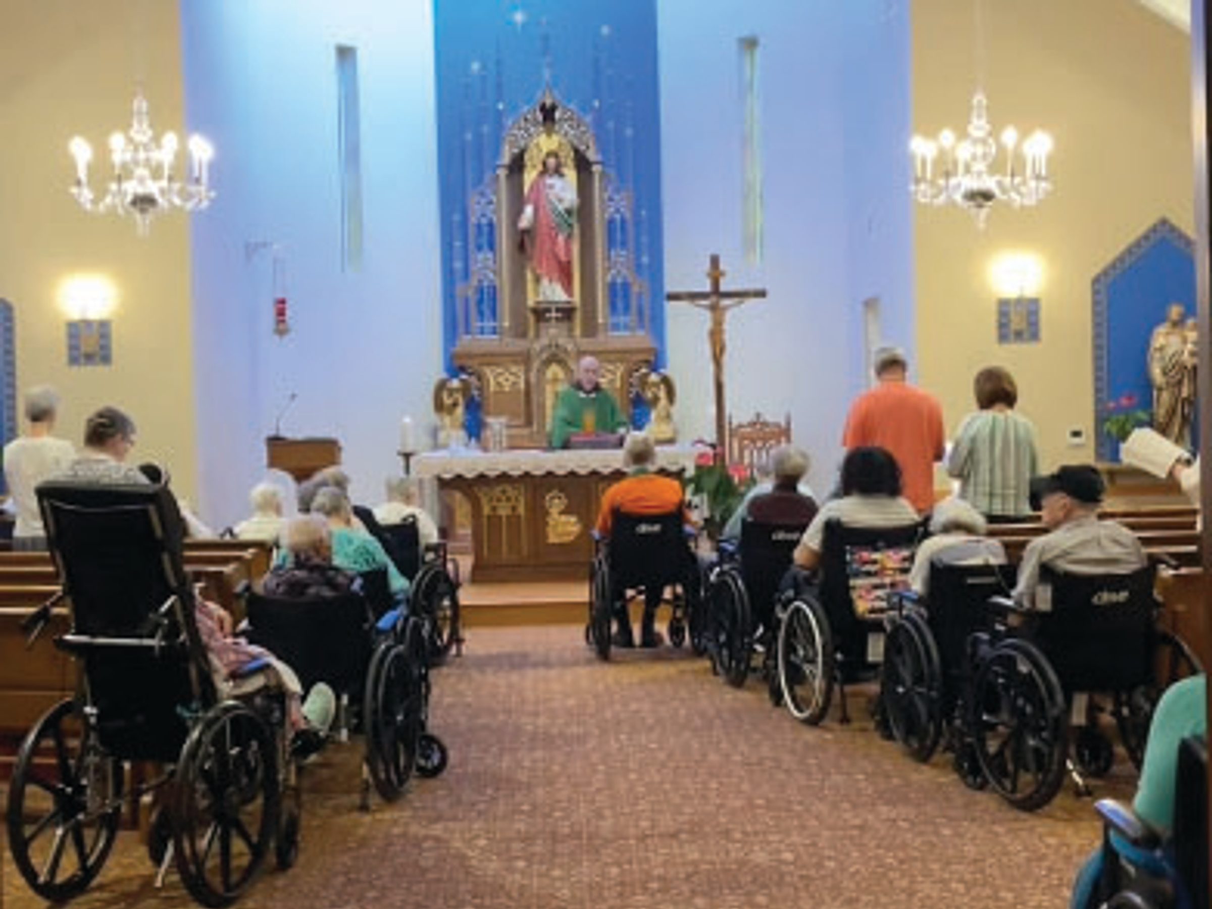 Among the 44 residents of the nursing home are several women religious and priests. The chapel is used each day for daily Mass and daily recitation of the rosary.