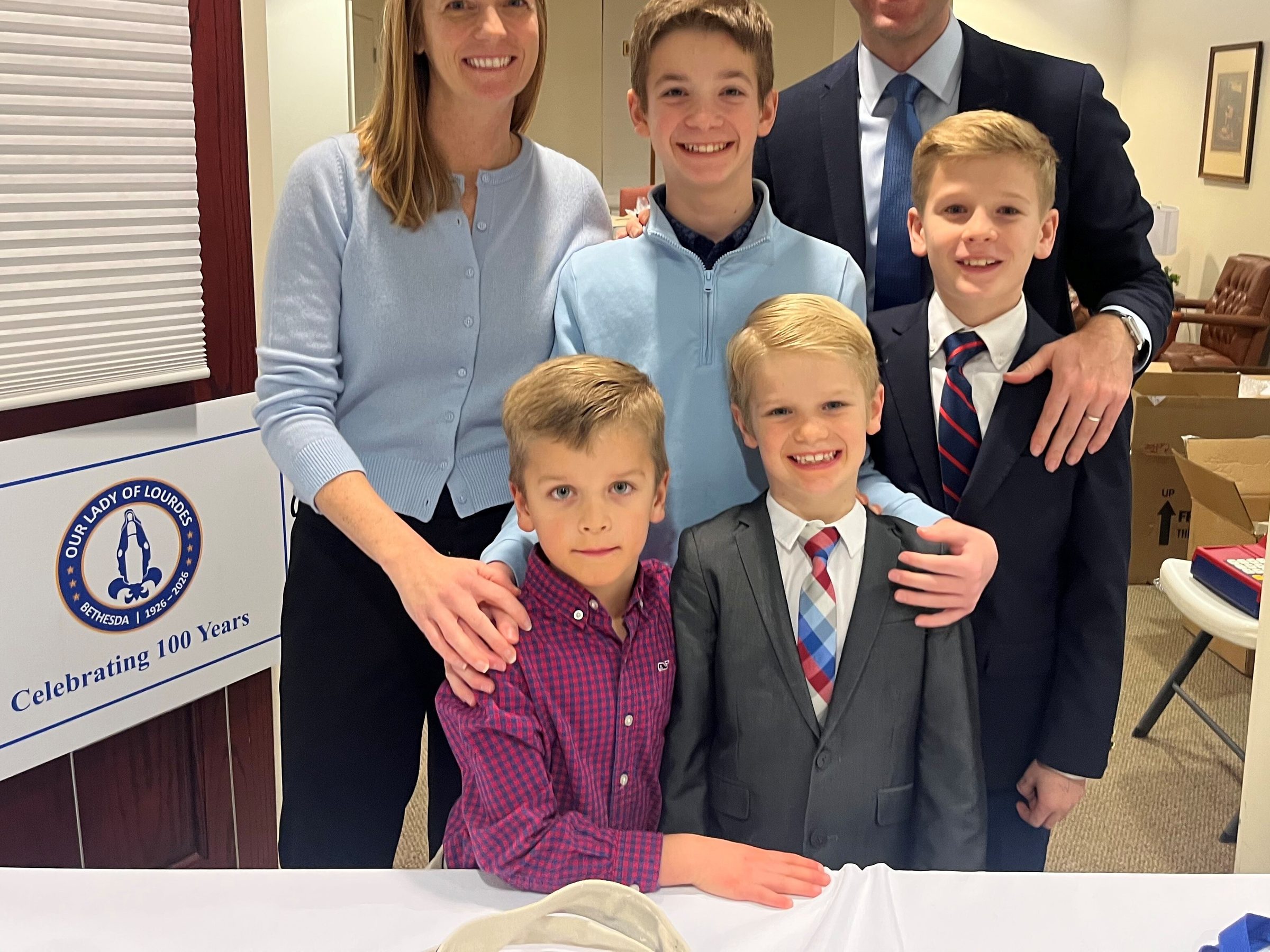 Volunteering at a nearby table selling 100th anniversary commemorative items were Jim Gadwood and his wife Jill, who were joined by their four sons who are all students at Our Lady of Lourdes School – Gregory in the seventh grade, Mark in fifth grade, Henry in third grade and Peter in kindergarten.