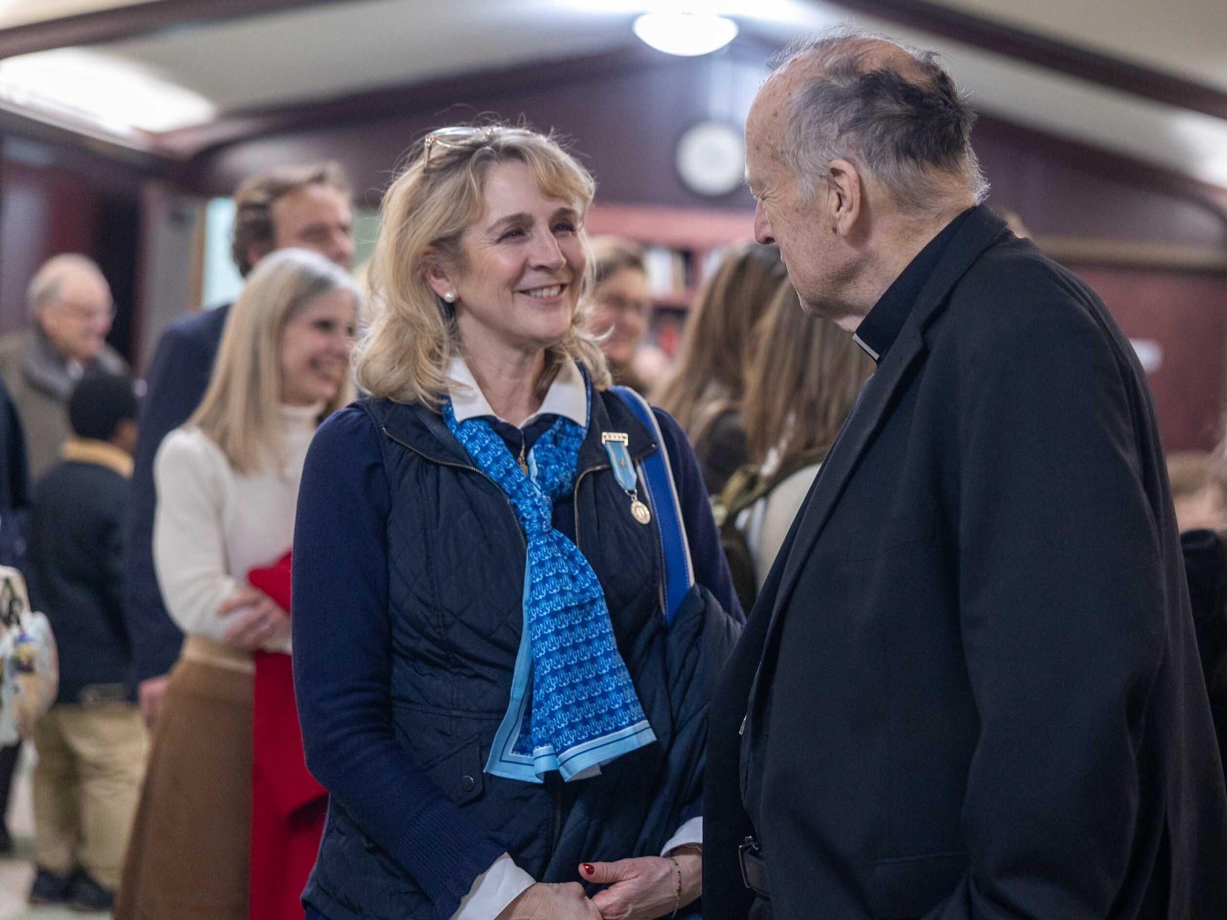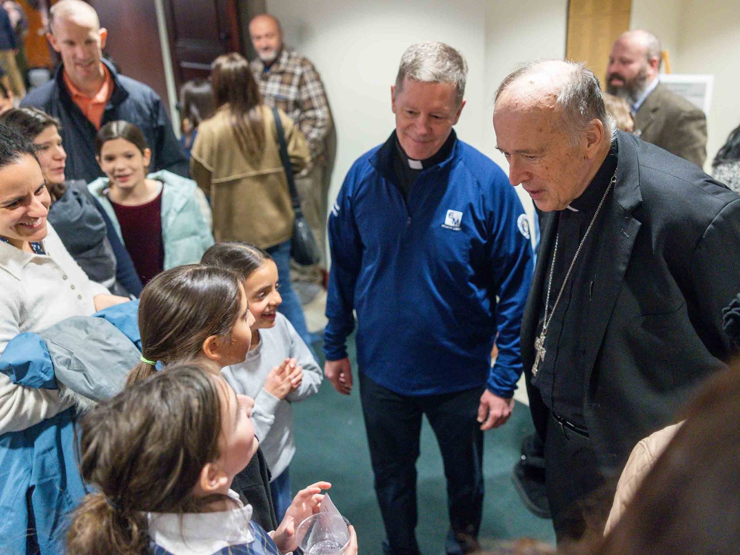 After the 100th anniversary Mass, Cardinal McElroy chatted with parishioners and with students from Our Lady of Lourdes School.