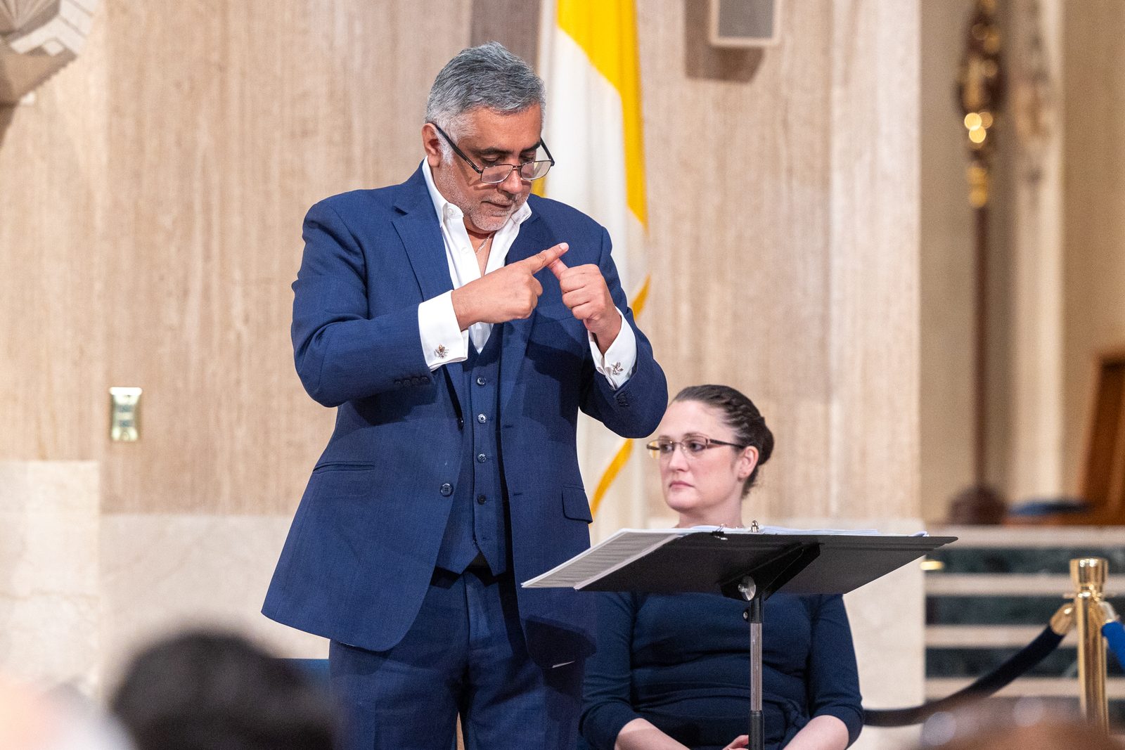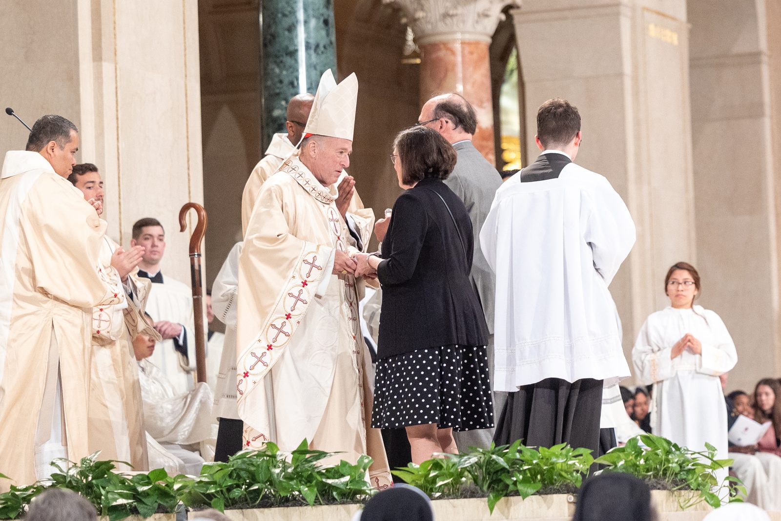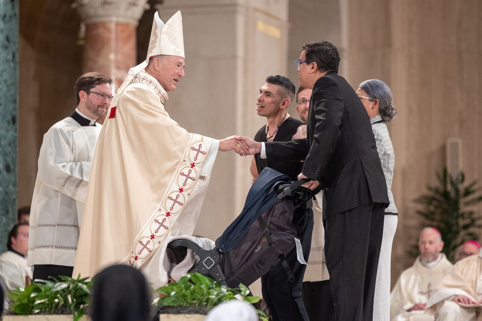 During his Solemn Mass of Installation as the new archbishop of Washington on March 11, 2025 at the Basilica of the National Shrine of the Immaculate Conception, Cardinal Robert McElroy was greeted by religious leaders of other faith communities. (Catholic Standard photo by Mihoko Owada)