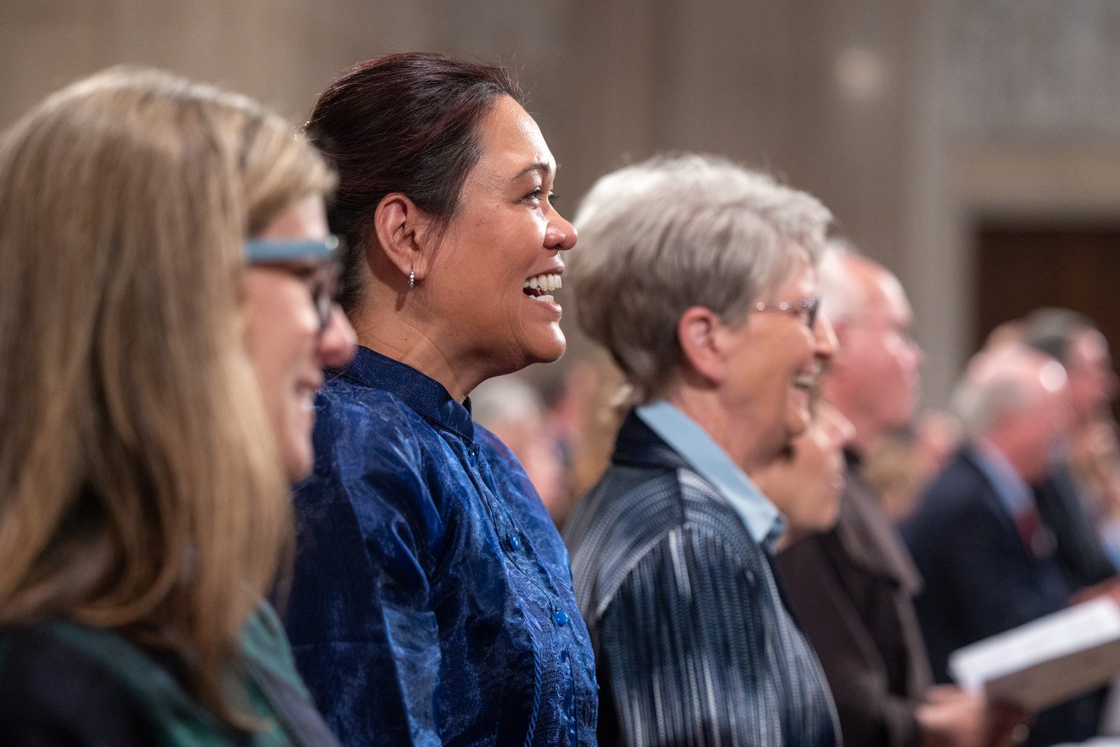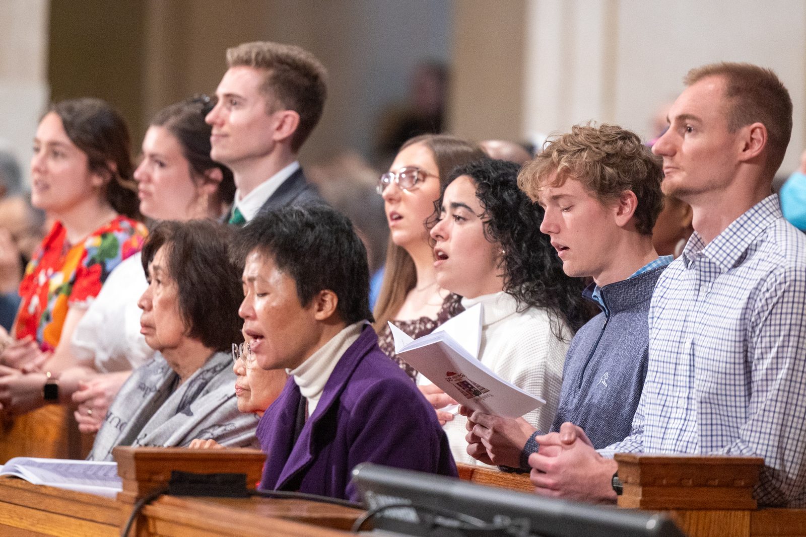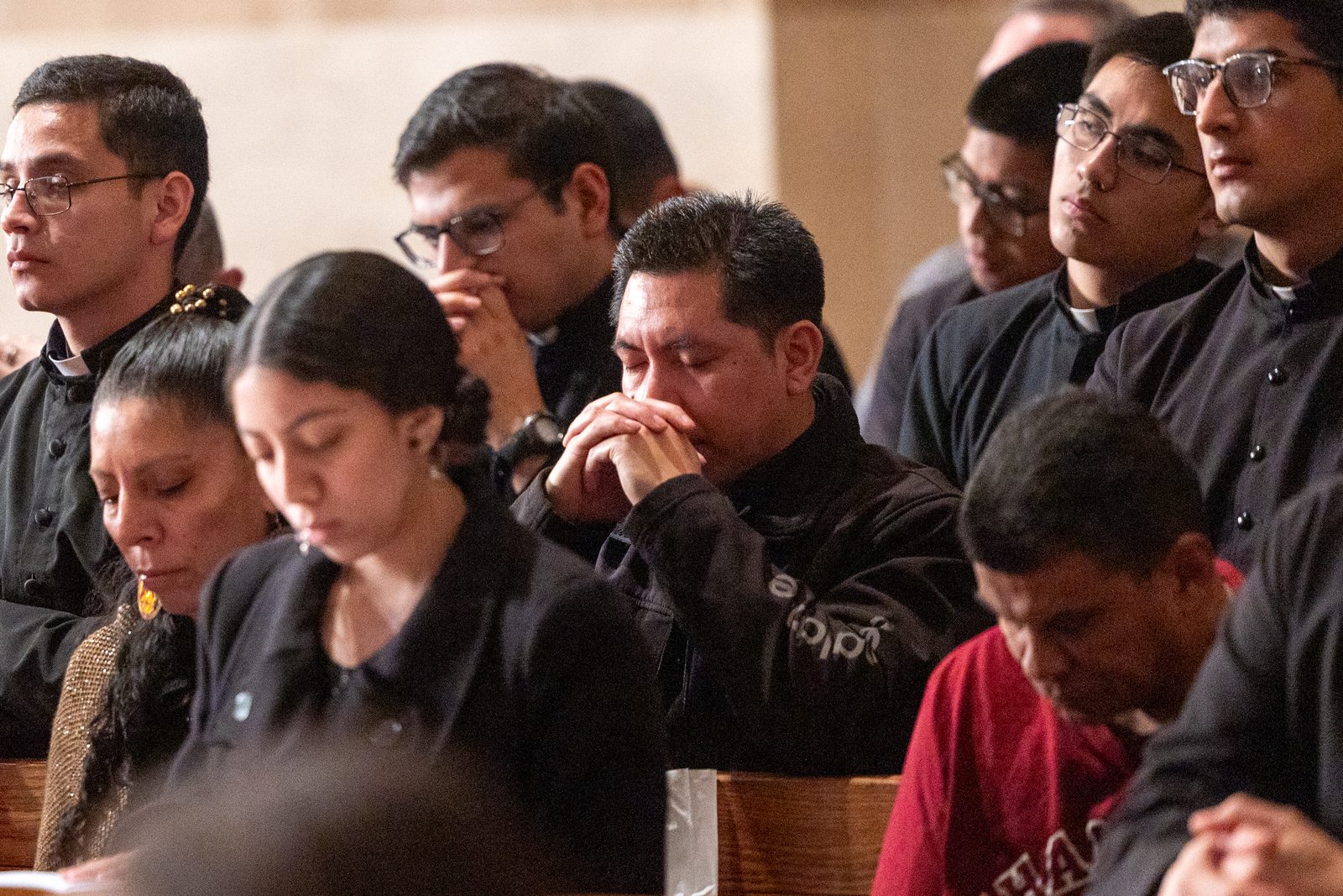 A woman prays during the Solemn Mass of Installation for Cardinal Robert McElroy as the new archbishop of Washington, which was held on March 11, 2025 at the Basilica of the National Shrine of the Immaculate Conception. (Catholic Standard photo by Mihoko Owada)