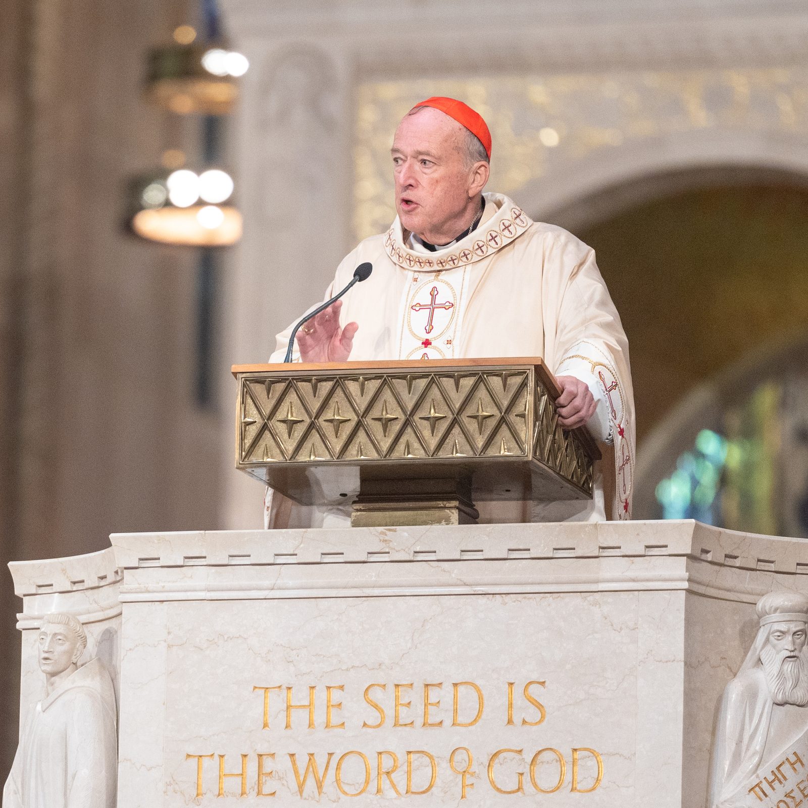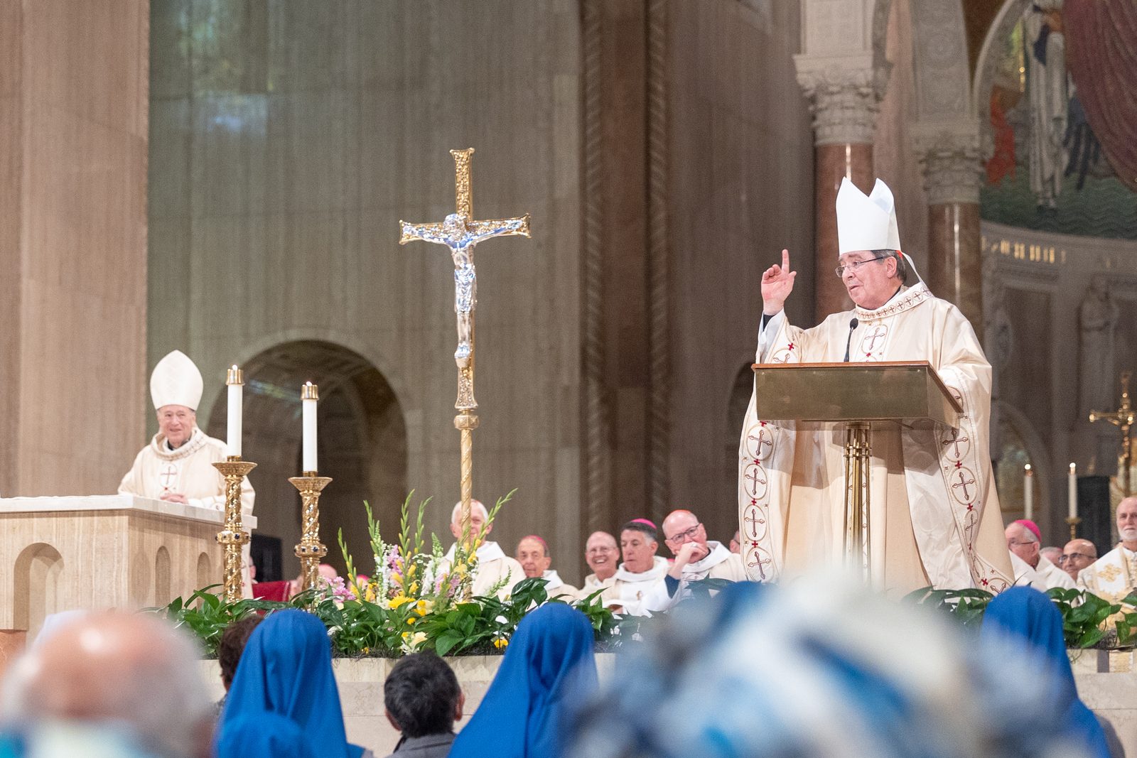 Cardinal Robert McElroy, the newly installed archbishop of Washington delivers his homily during the March 11, 2025 Solemn Mass of Installation at the Basilica of the National Shrine of the Immaculate Conception. (Catholic Standard photo by Mihoko Owada)