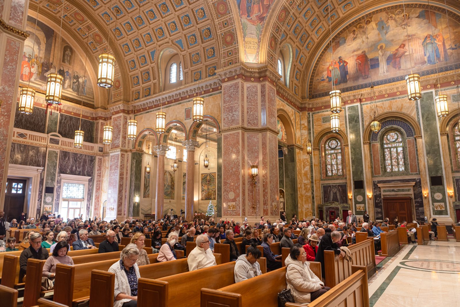 People attend a Mass for the Solemnity of the Blessed Virgin Mary, the Mother of God, and for the Opening of the Jubilee Year on Jan. 1, 2025 at the Cathedral of St. Matthew the Apostle in Washington, D.C. (Catholic Standard photo by Rachel Lincoln)