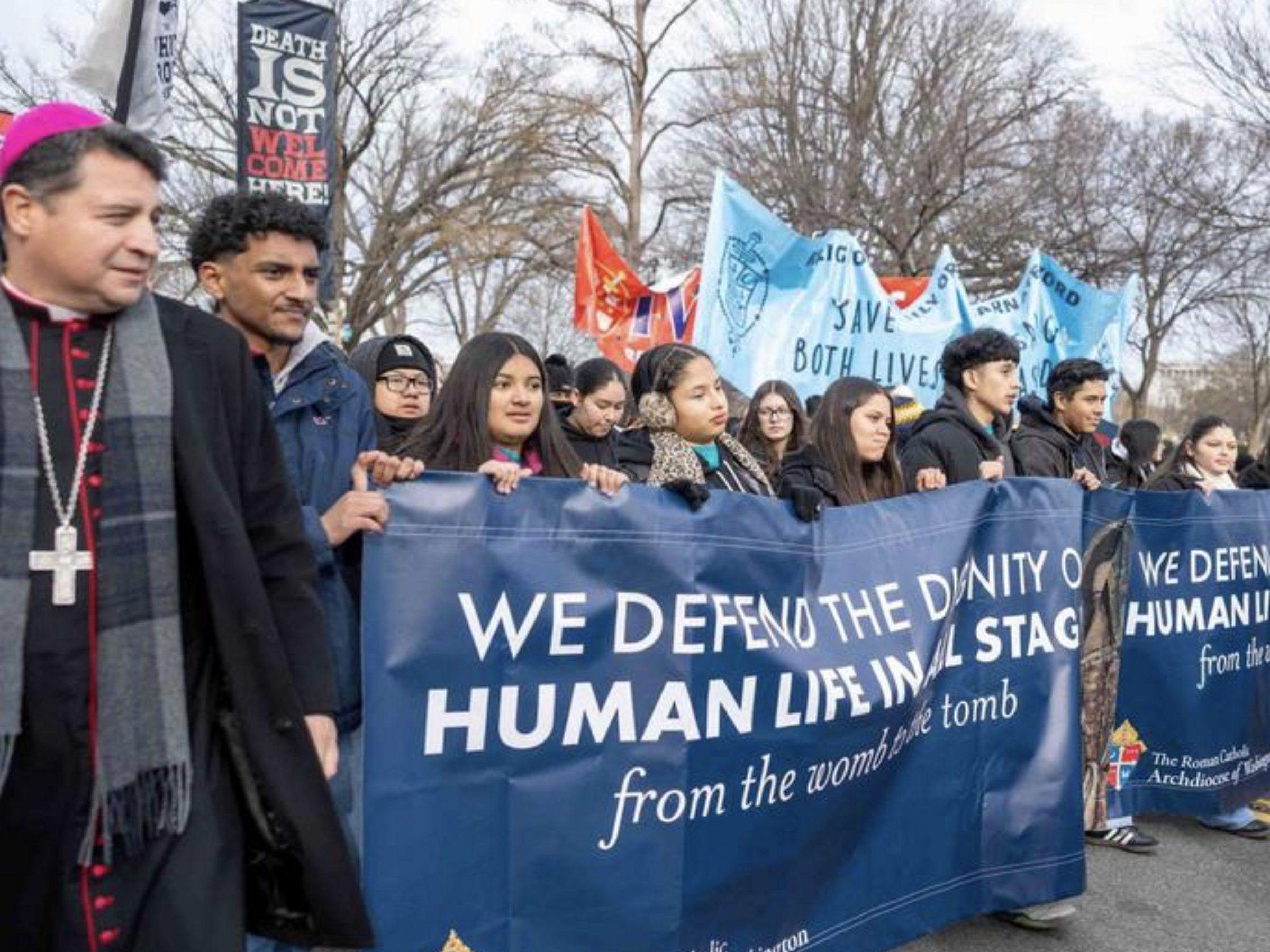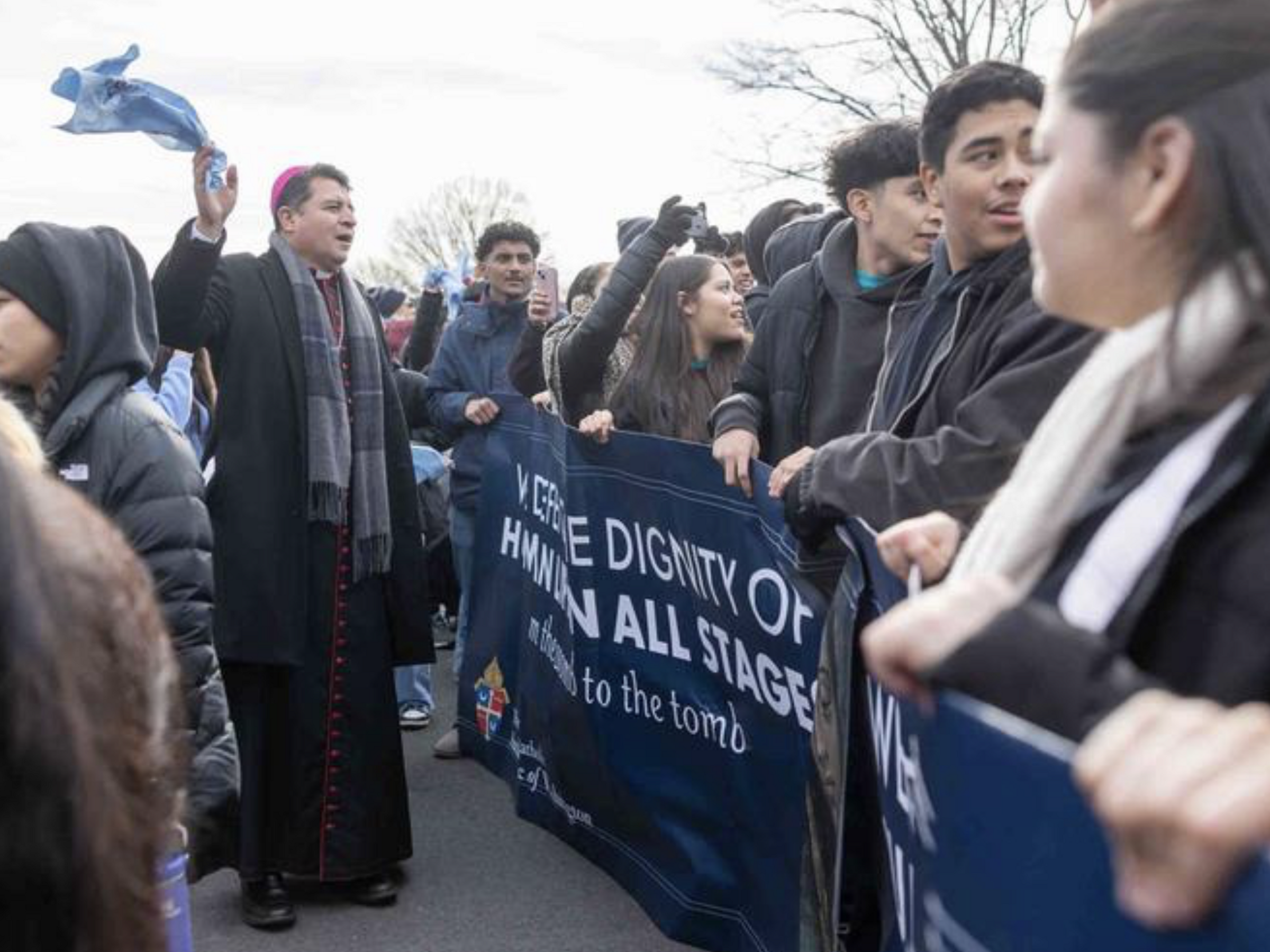 Washington Auxiliary Bishop Evelio Menjivar joins marchers from the Roman Catholic Archdiocese of Washington as they participate in the March for Life on Jan. 23, 2026. (Catholic Standard photos by Mihoko Owada) Washington Auxiliary Bishop Evelio Menjivar joins marchers from the Roman Catholic Archdiocese of Washington as they participate in the March for Life on Jan. 23, 2026. (Catholic Standard photos by Mihoko Owada)