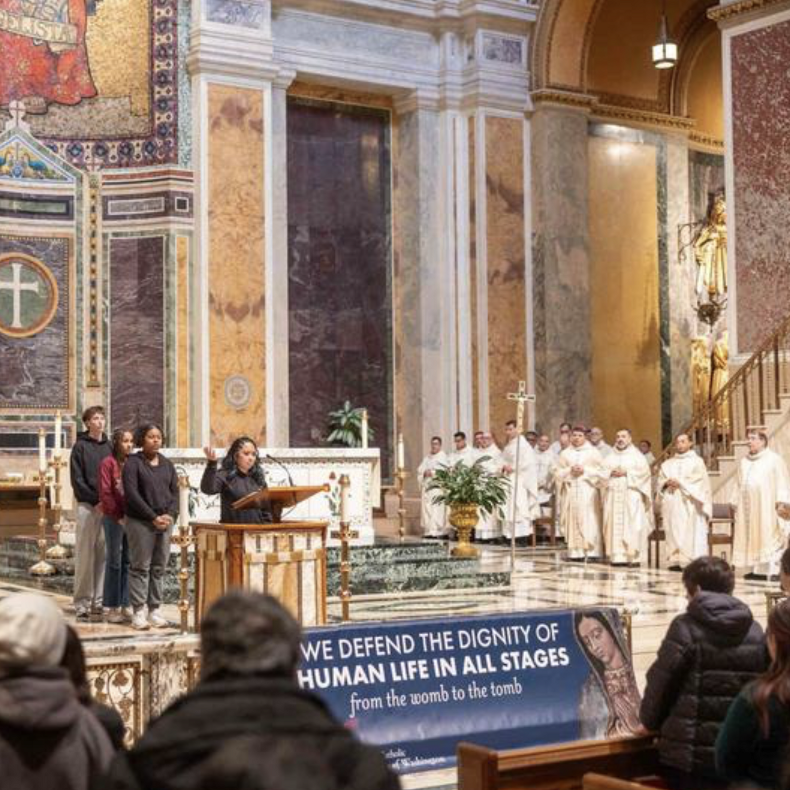 Young people participate in the annual Youth Mass for Life on Jan. 23, 2026 at the Cathedral of St. Matthew the Apostle in Washington. The Mass was held prior to the annual national March for Life. (Catholic Standard photos by Mihoko Owada)