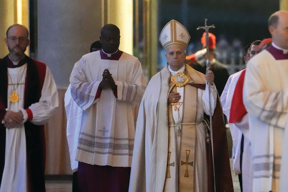 The gathering in Sacred Heart School’s theater included Heil’s parents, Donna and Jack Heil, and her brother Eric and sister Gretchen who had traveled from Charlotte, North Carolina, where she attended St. Gabriel School and Charlotte Catholic High School. Also cheering Heil on, waving pompoms of golden tinsel, were Sacred Heart faculty members, students and parents, along with archdiocesan school officials and fellow principals, seated in socially distanced chairs and wearing face masks in accord with coronavirus safety precautions at local Catholic schools.