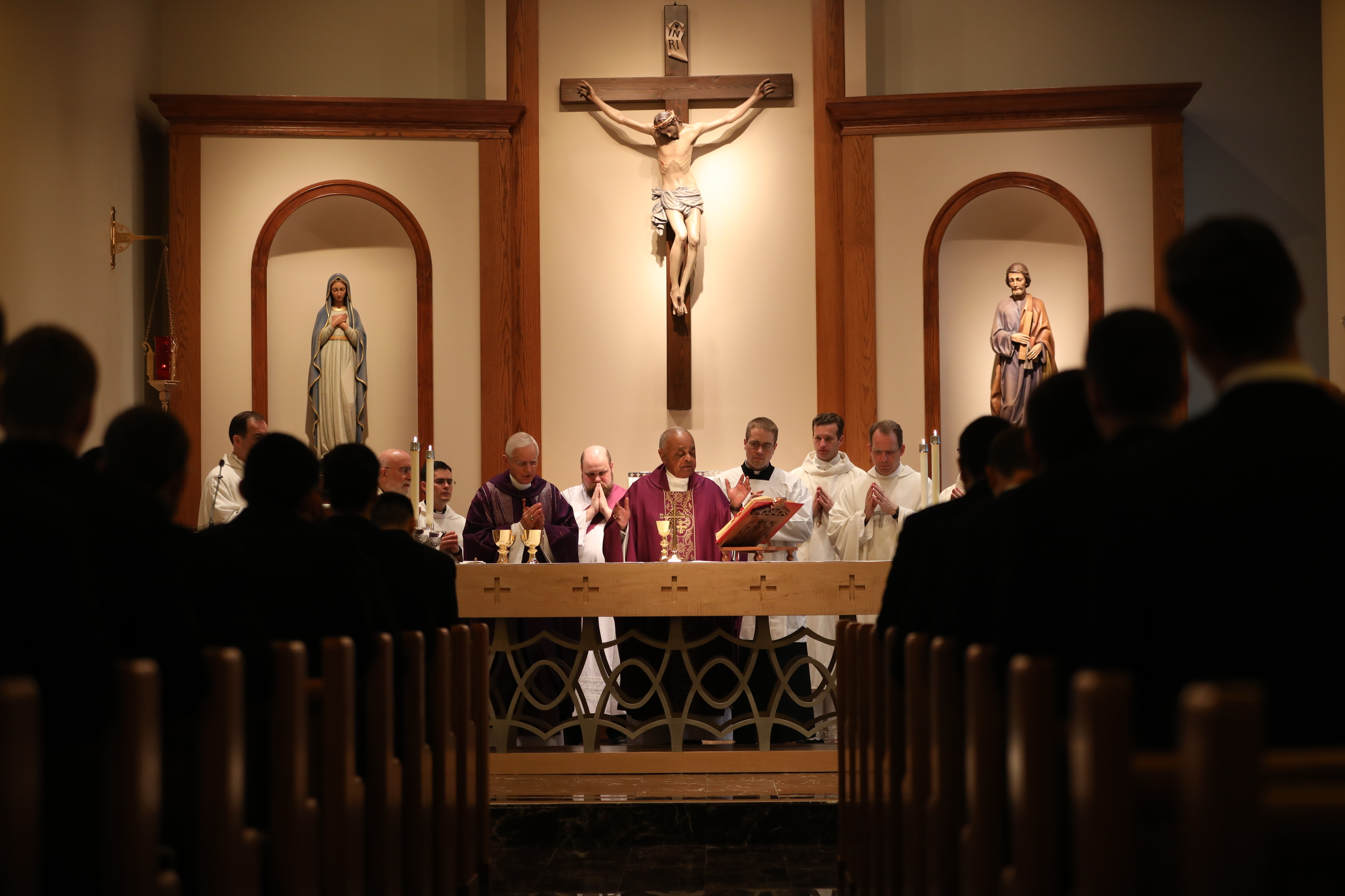 Addressing the seminarians during his homily at the Mass in their chapel, Archbishop Gregory said, “Today I feel very close to this community, even though this is my first time to visit and pray with you.”